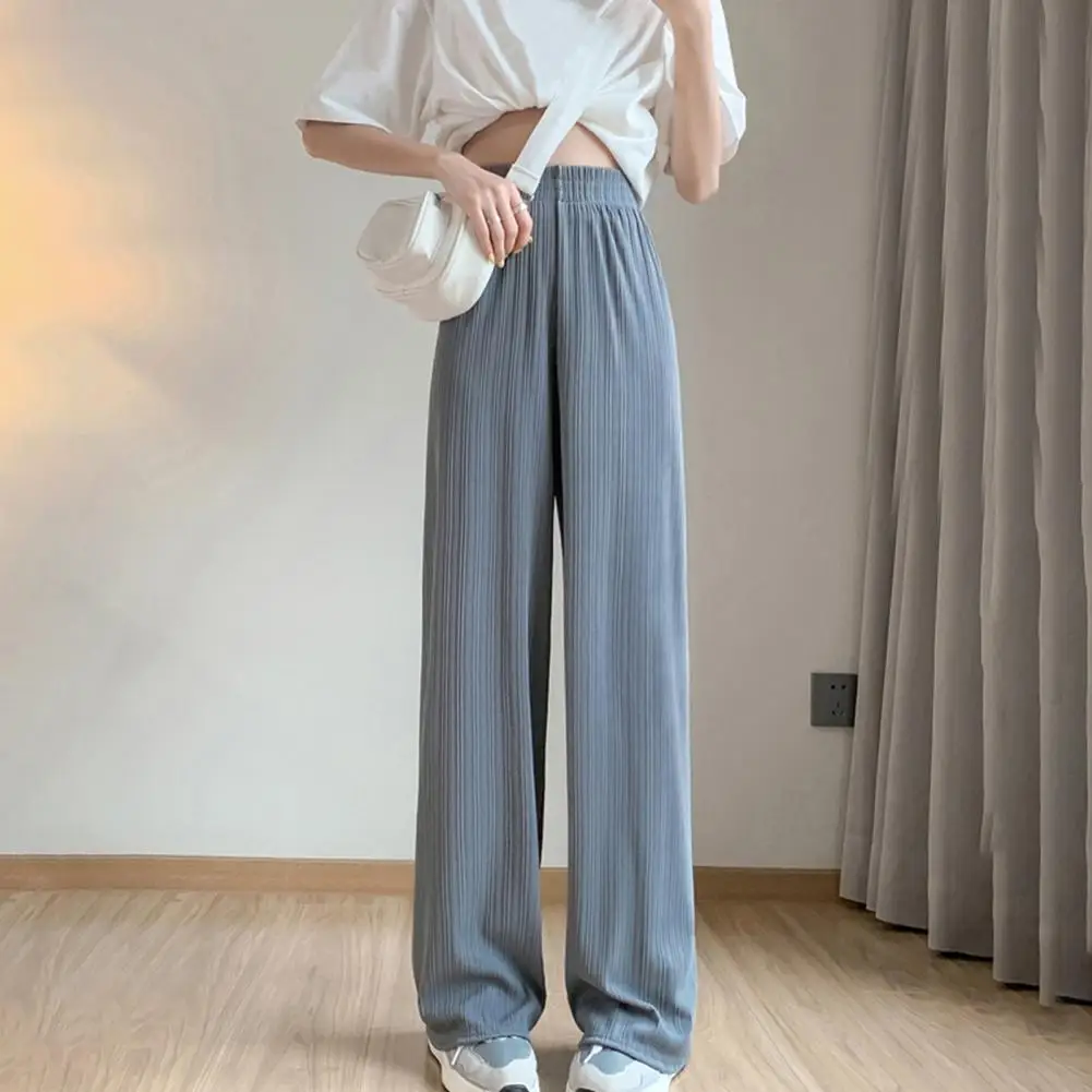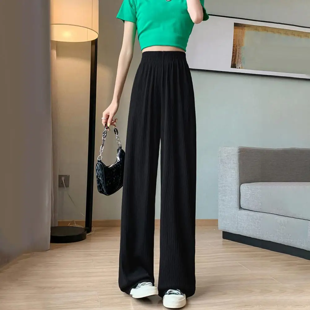 2024 Spring Summer Ice Silk Wide Leg Pants for Women Korean Thin Chiffon High Waist Saggy Loose Straight Casual Fashion Trousers