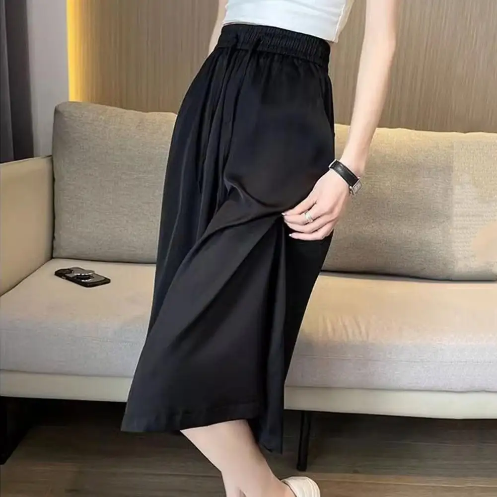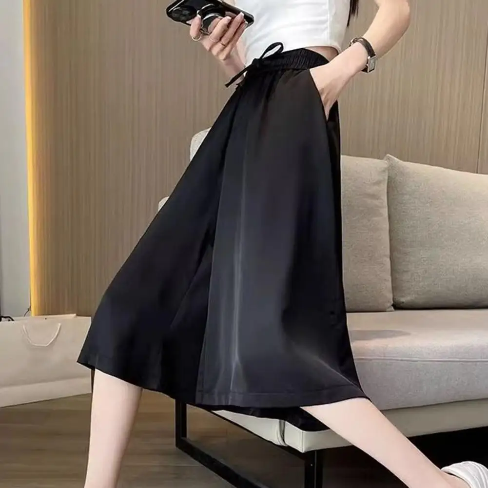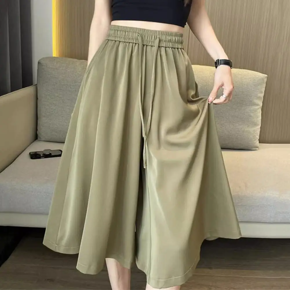 Wide-leg Bottoms Stylish Women's Wide Leg Cropped Pants with Pockets Elastic Waist Skirt Pants for Casual Summer Wear Adjustable