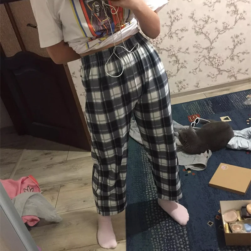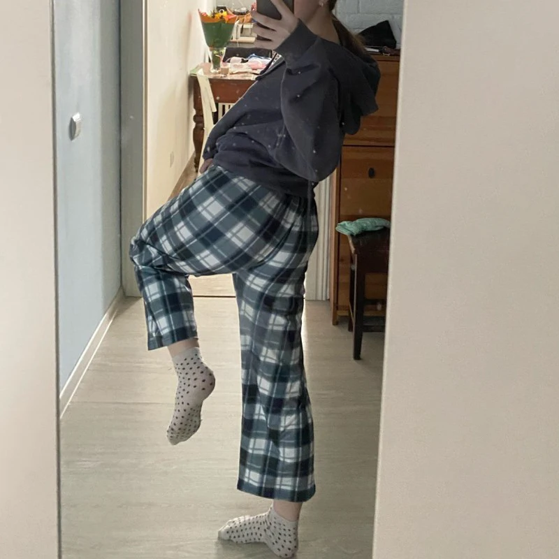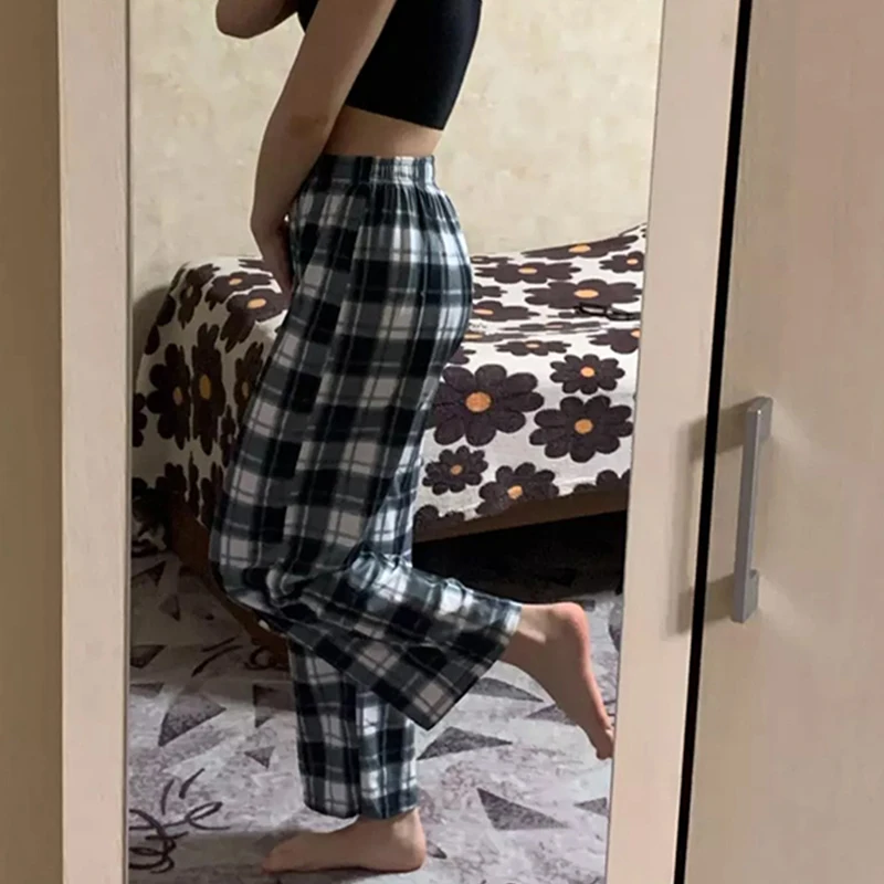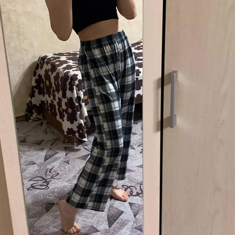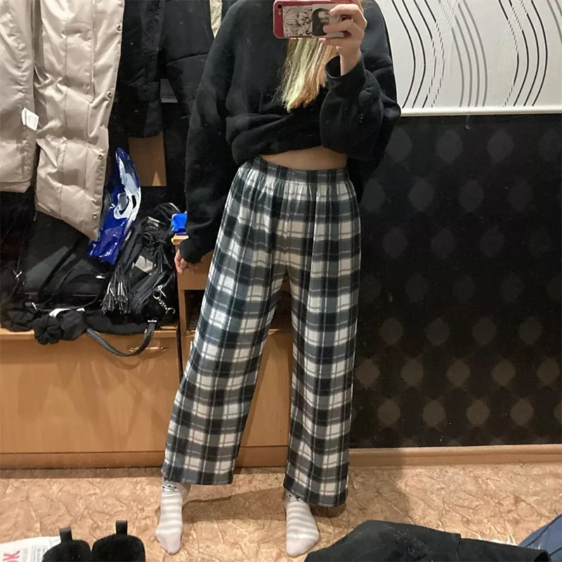 Chic Women Plaid Pants High Waist Super Wild Teens Trendy Trouser Harajuku Student Full-Length Bottoms Streetwear Wide Leg Pants