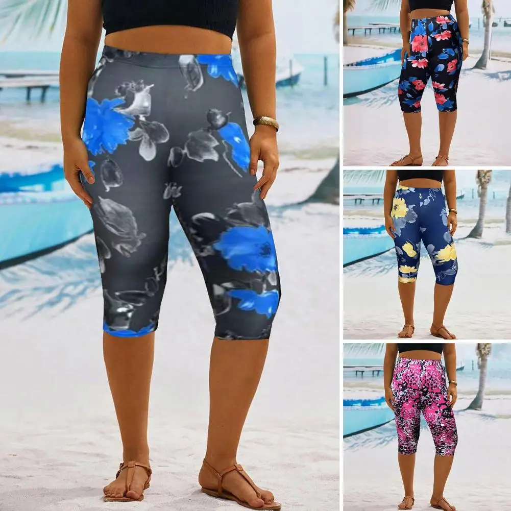 Name | Casual Pants Women Cropped Pants Stylish Women's Cropped Pants with Elastic High Waist Digital Flower Print Mid-calf for Casual |