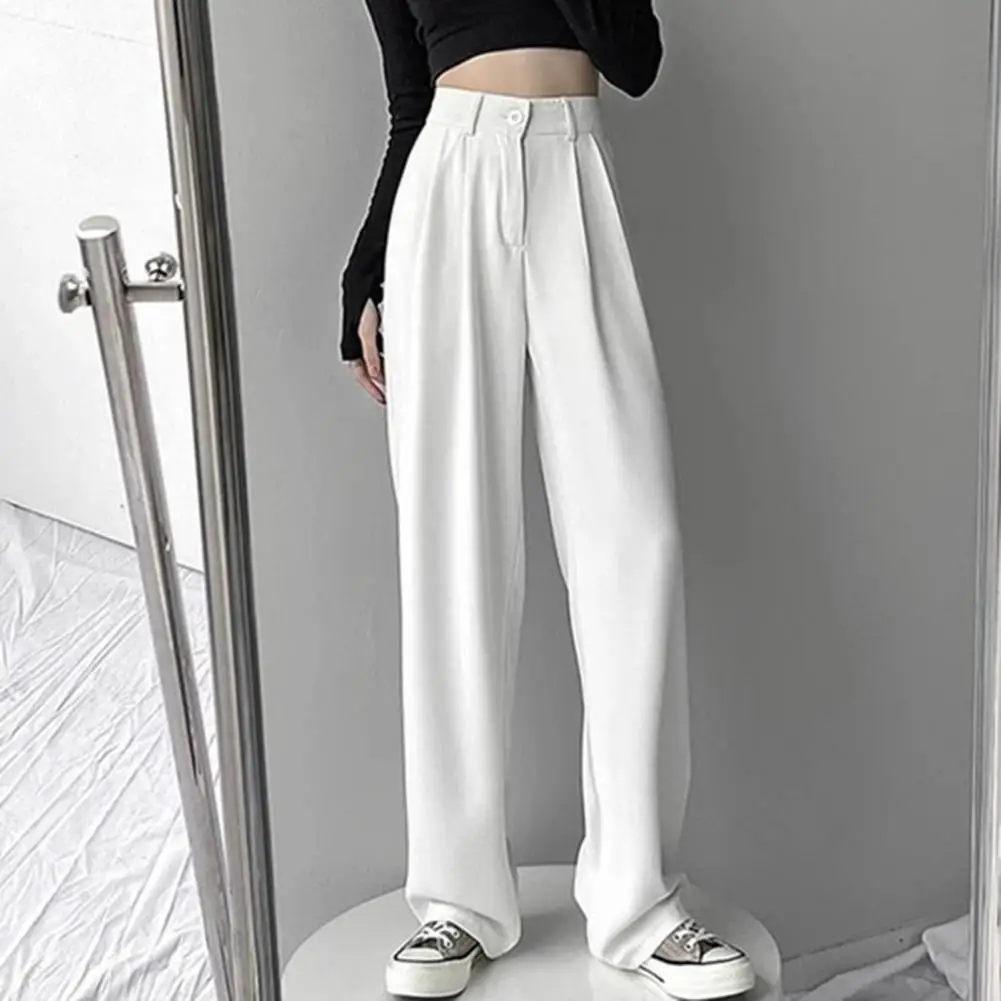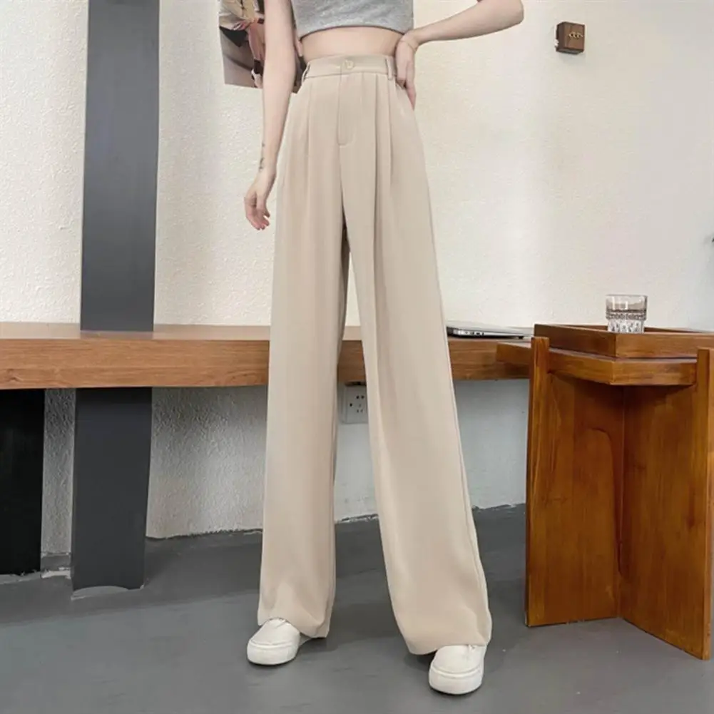 Name | Women Solid Color Suit Pants Elastic High Waist Straight Leg Pants Wide Leg Trousers Slant Pockets Loose Office Trousers |
