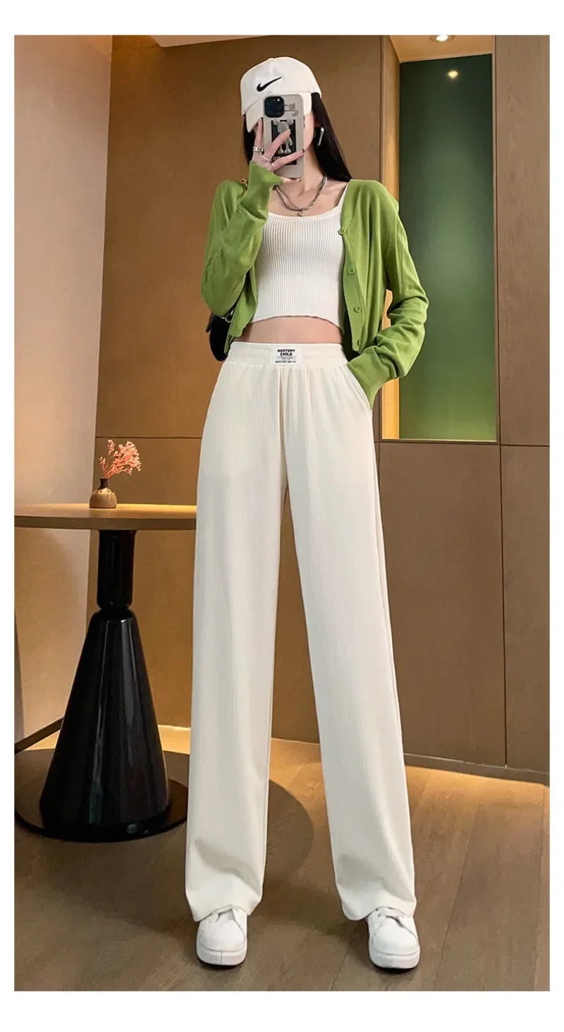 Name | Spring Summer Women Thin Pants Comfortable High Waist Knitted Solid Ladies Straight Pants Korean Fashion Female Trousers Y2k |