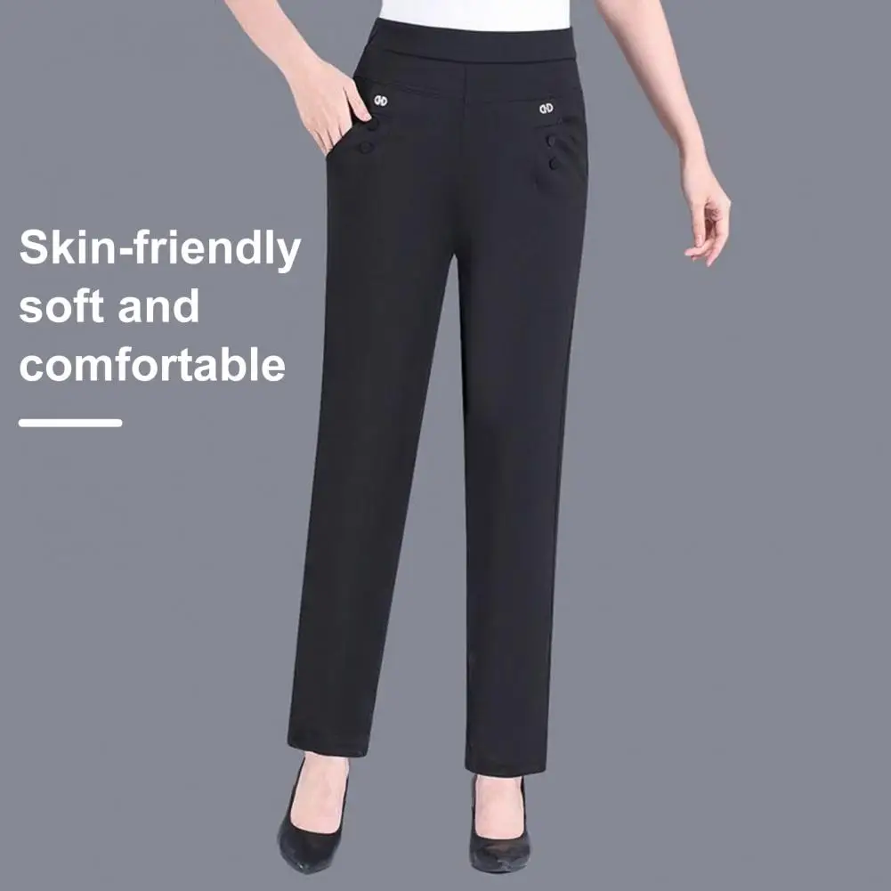 Name | Women Summer Pants Elastic Waistband Women's Summer Pants with Pockets High Waist Casual Trousers for Mid-aged Ladies Solid |