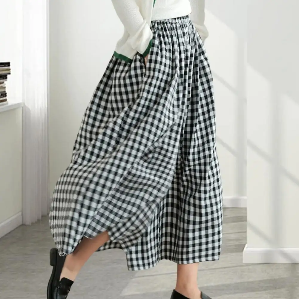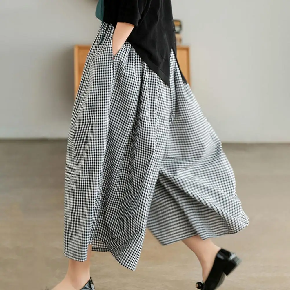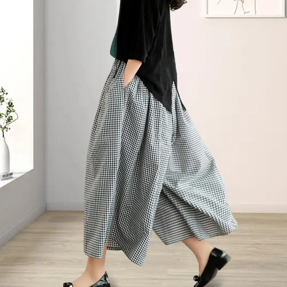 Versatile Plaid Print Women Pants Plaid Print Wide Leg Sport Trousers with Reinforced Pockets for Women Mid-rise Elastic Waist