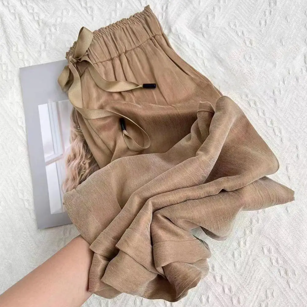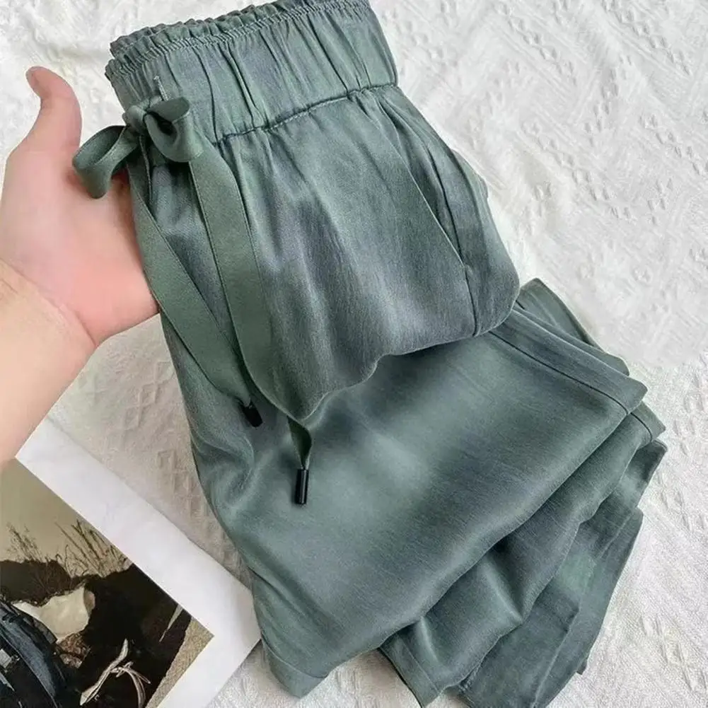 Name | Summer Thin Ice Silk Elastic Pants Solid Color High Waist Loose Casual Pants for Women Female Elastic Straight Leg Pants |