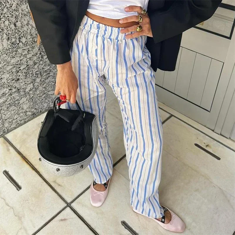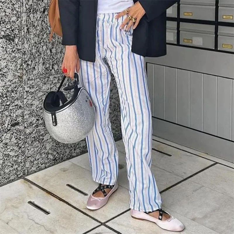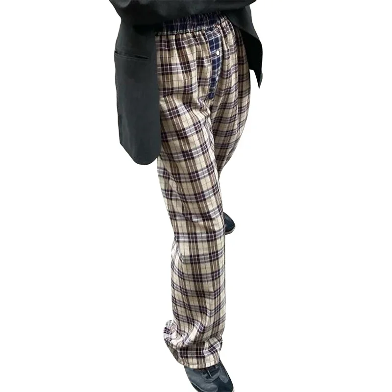 Name | y2k Pants 2000s Women Plaid/Striped Print Elastic Low Waist Straight Pants Lounge Trousers with Pockets Streetwear |