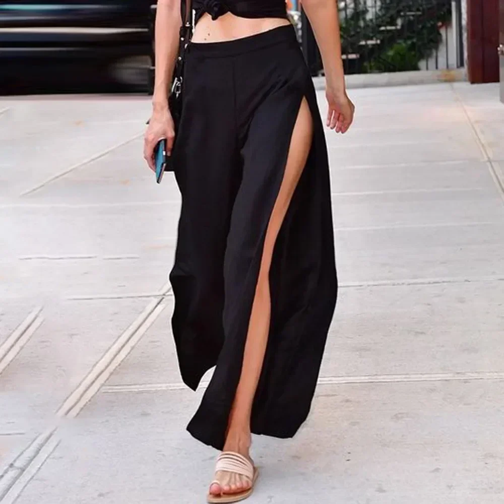 Name | Sexy Women's Pants Side Split High Waist Yoga Wide Leg Party Club Solid Black Baggy Trousers Pants Woman Clothing |