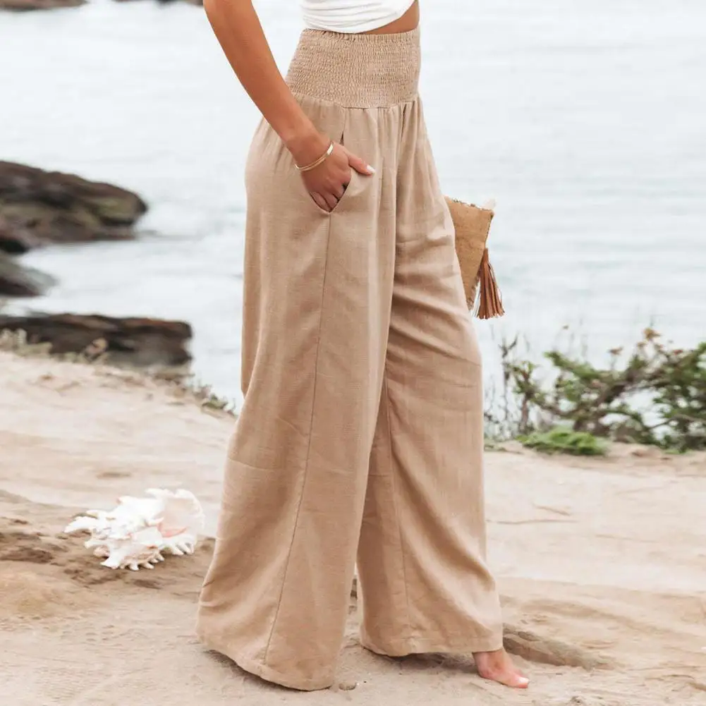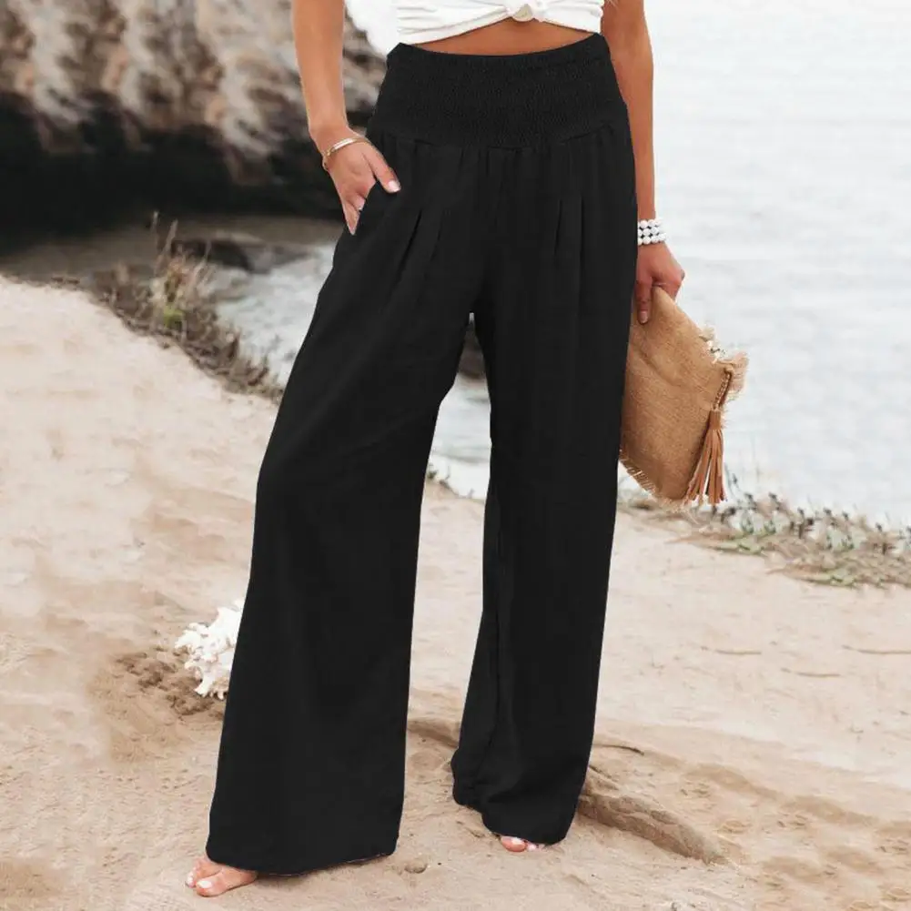 Versatile Wide Leg Bottoms Versatile Women's Wide Leg Pants Solid Color Elastic Waist Casual Trousers for Spring for Fashionable