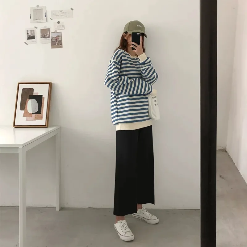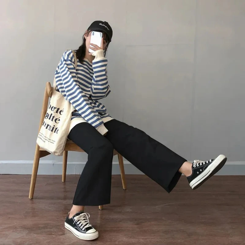Wide Leg Pants Women Spring Pure Black Korean All-match Trendy Elegant Casual Daily Female Trousers Elastic Waist Hot Sale Chic