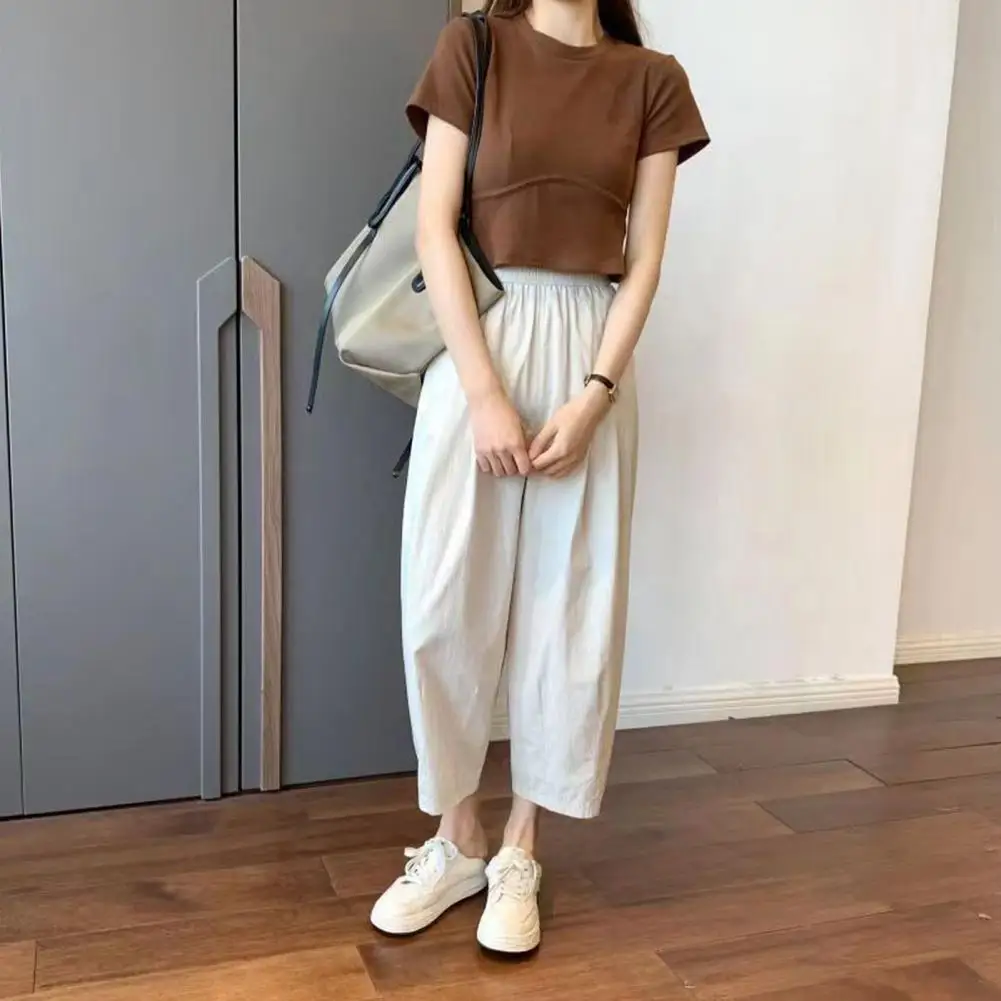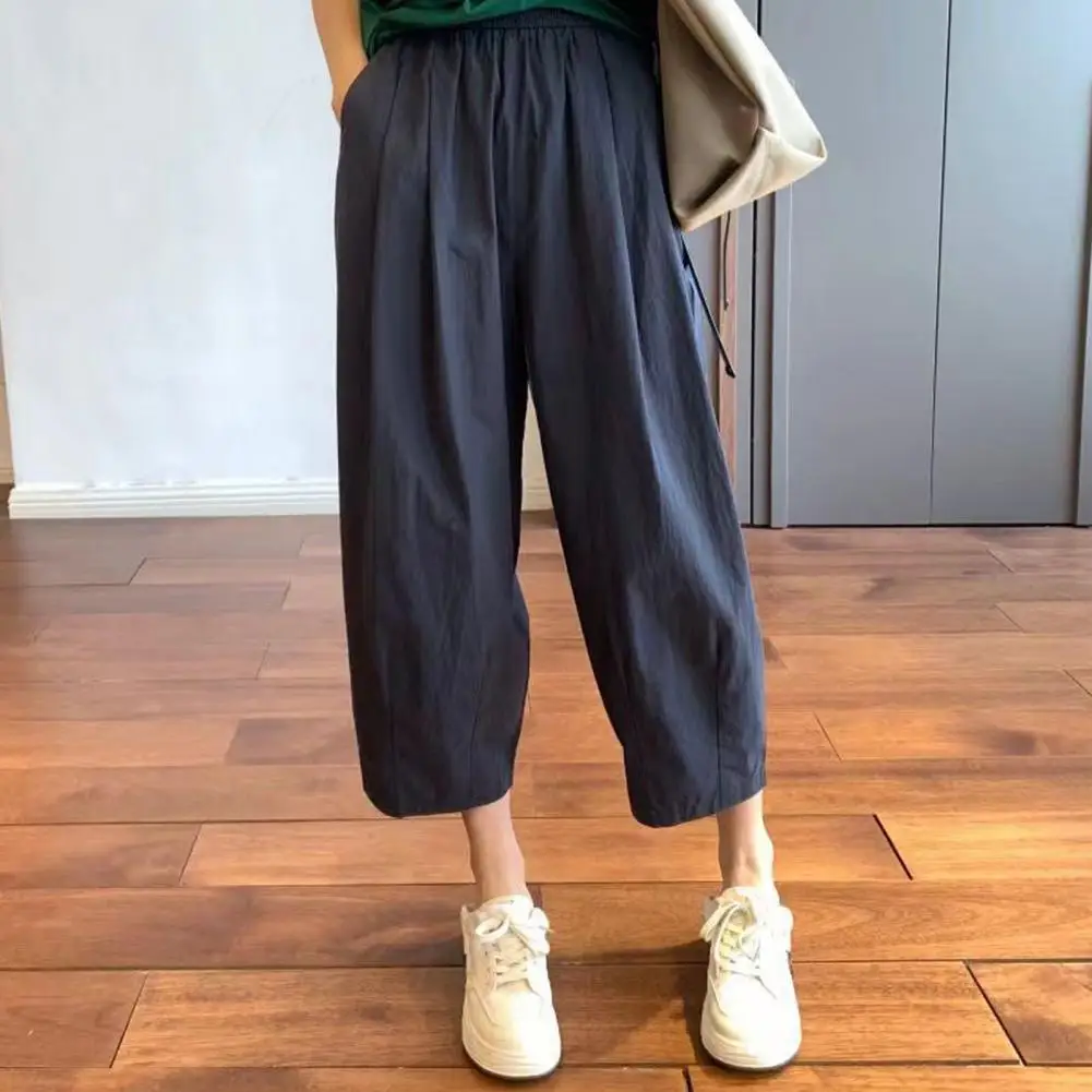 Versatile Straight-leg Pants Wide Leg Women's Harem Pants Elastic Waist Adjustable Drawstring Multi-pocketed Casual for A