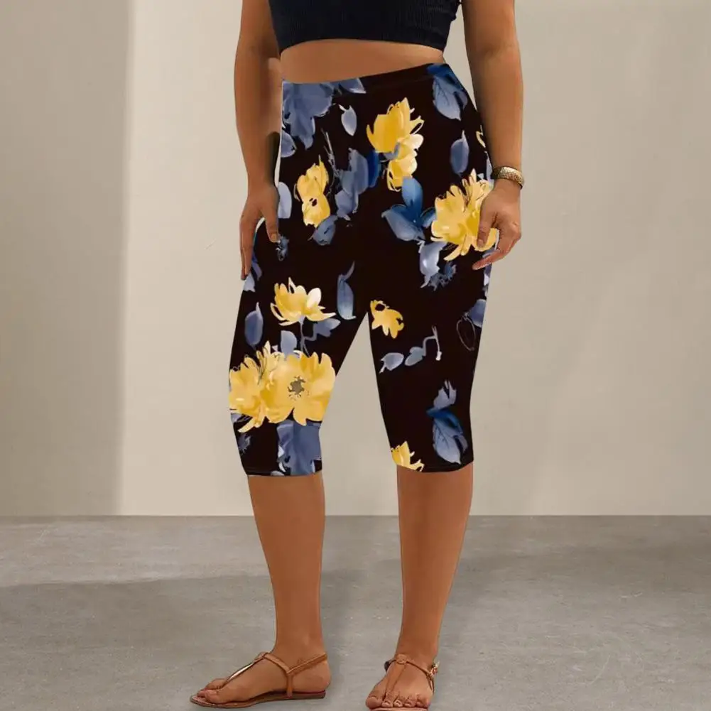 Name | Sporty Women Trousers Women Bottoms Stylish Women's Cropped Pants with Elastic High Waist Digital Flower Print for Casual |