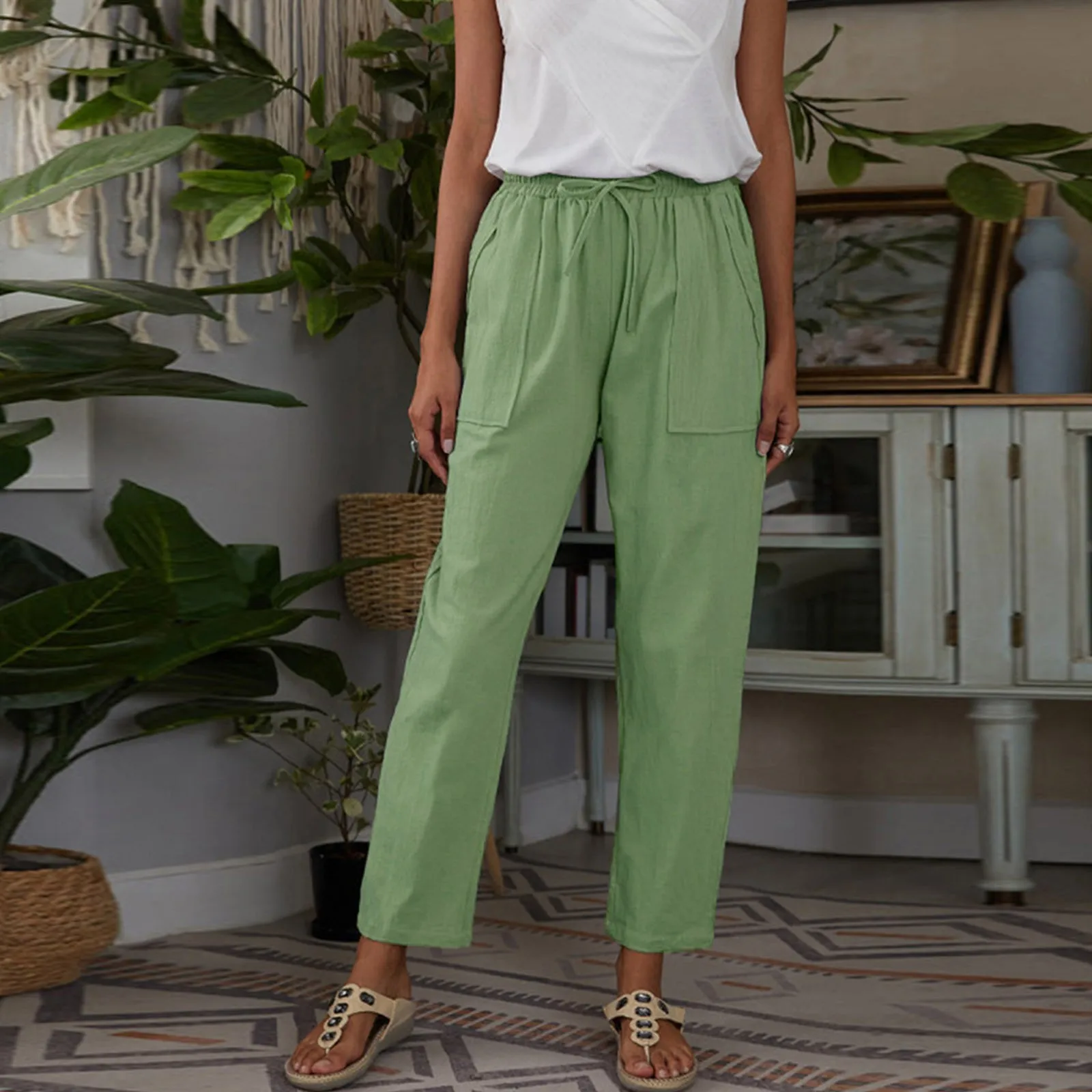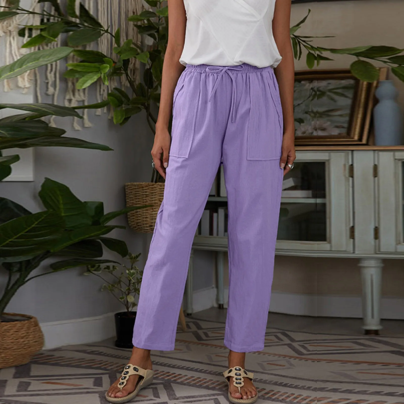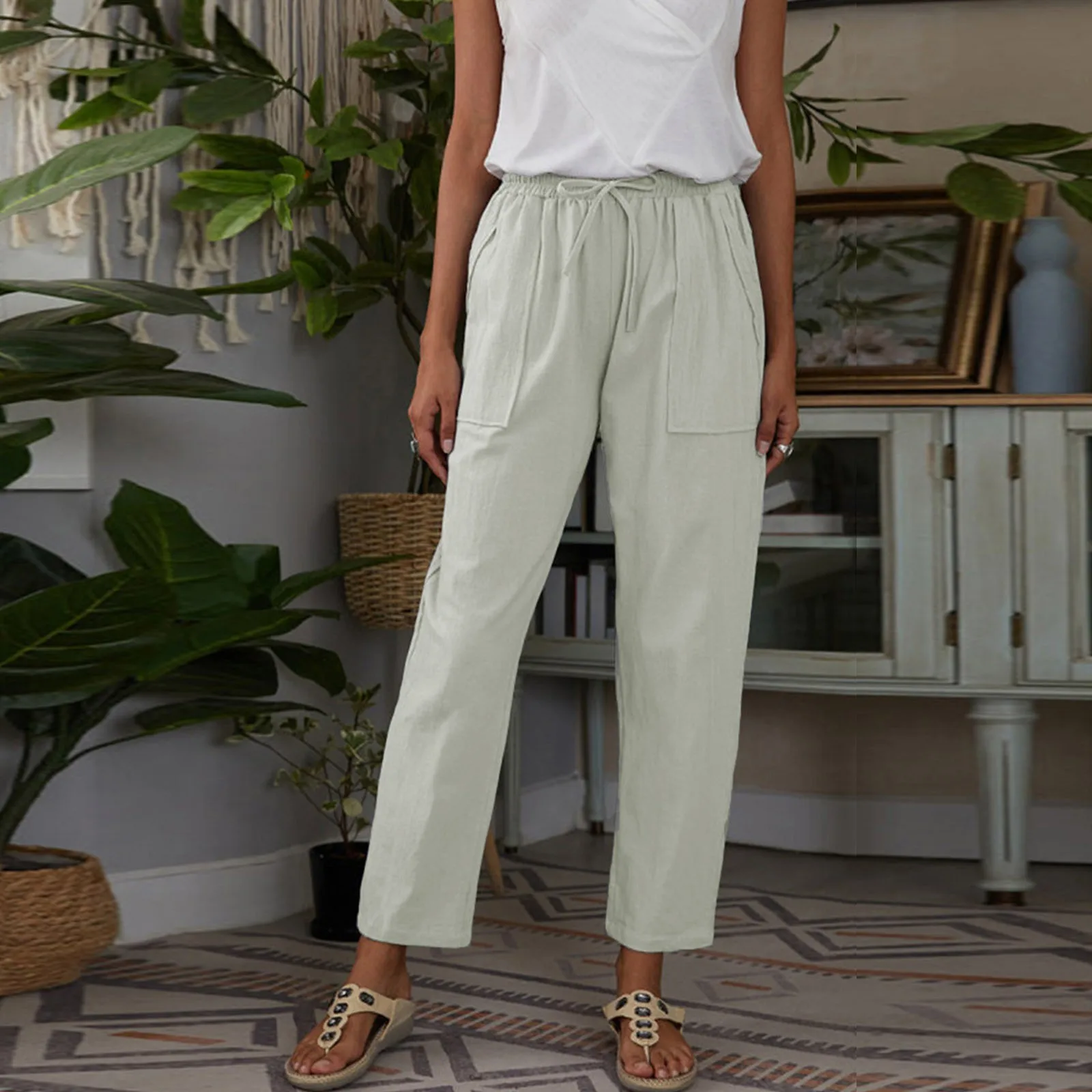 Name | Summer Cotton Linen Casual Pants For Women 2022 Solid Straight Drawstring Women'S Pant Big Pocket Trousers Female Long Pants |