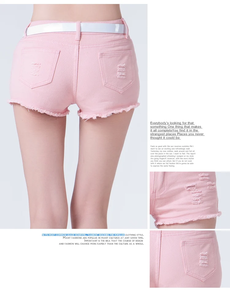 summer fashion casual cotton brand female women girls hole mid waist Denim Shorts