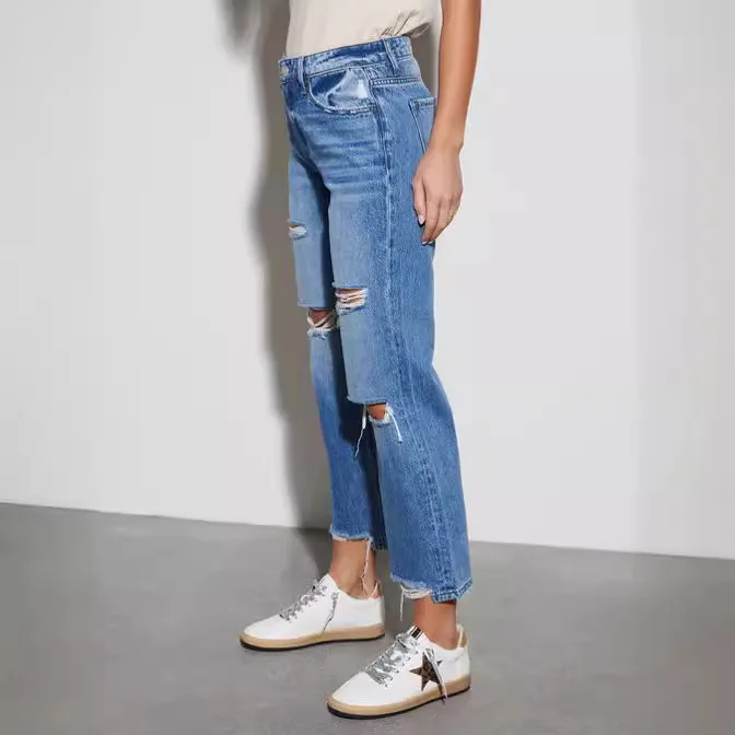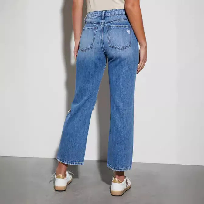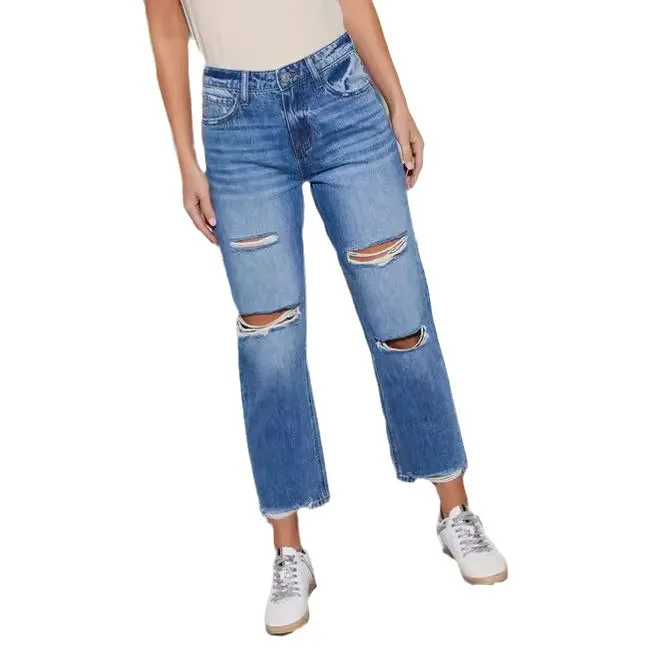 Name | Ripped Washed Straight Ankle Length Jeans Women Denim Pants Hole Loose Fit Jean Pockets Streetwear High Waist Distressed |