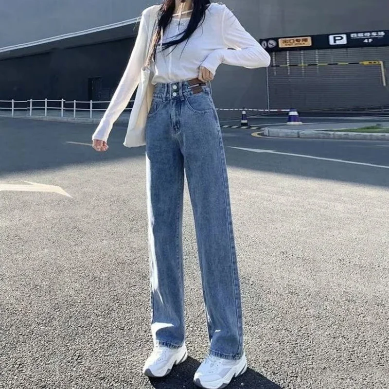 Jeans High Waist Women 2023 Spring Autumn New Fashion Loose Cover Sag Wide Leg Pants Female Large Size Thin Mopping Ninth Pants