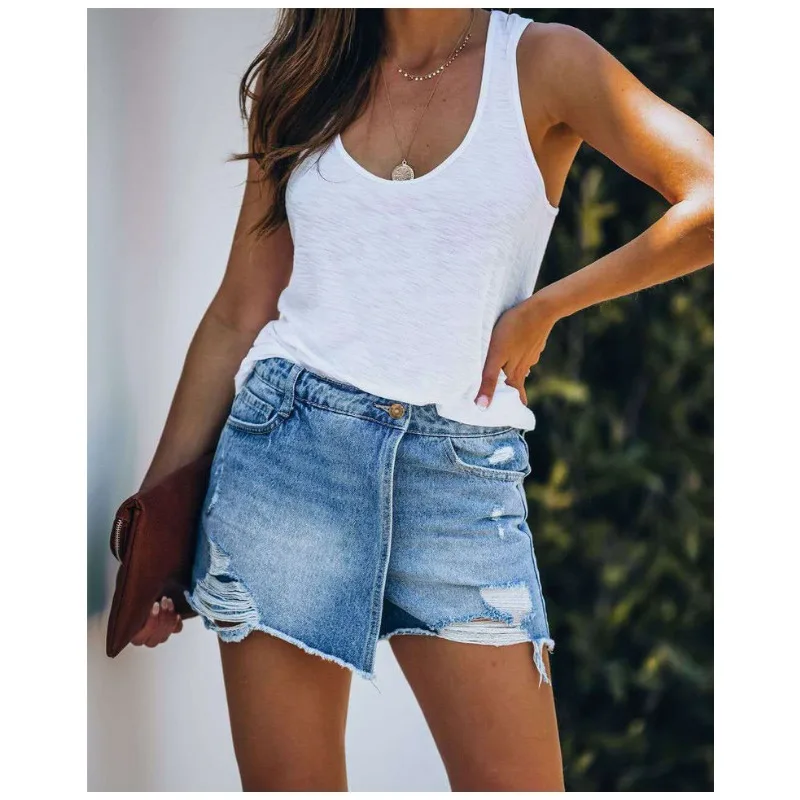 Name | Fashion High Waist Ripped Straight Denim Pants Y2K Clothes Streetwear Summer Women Casual Short Jeans |
