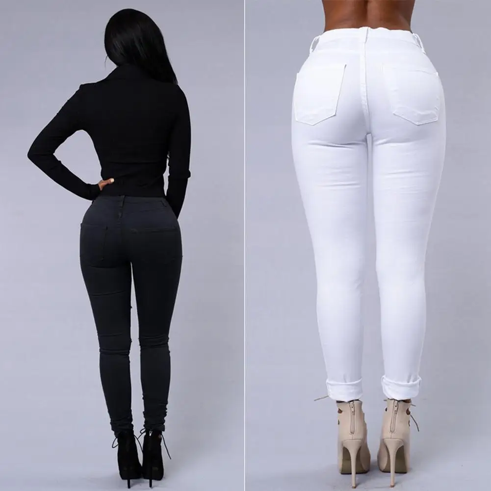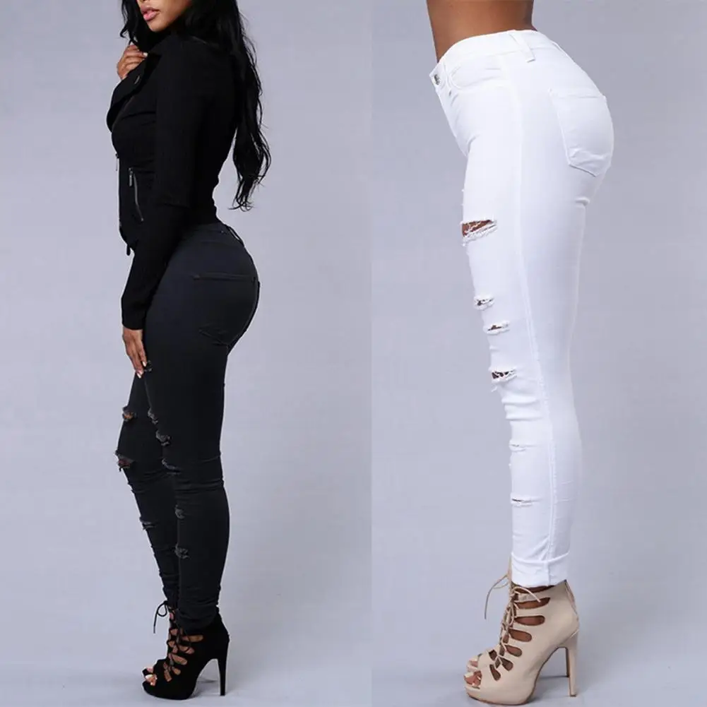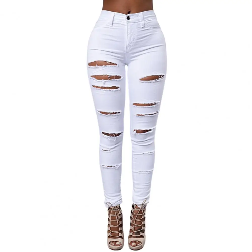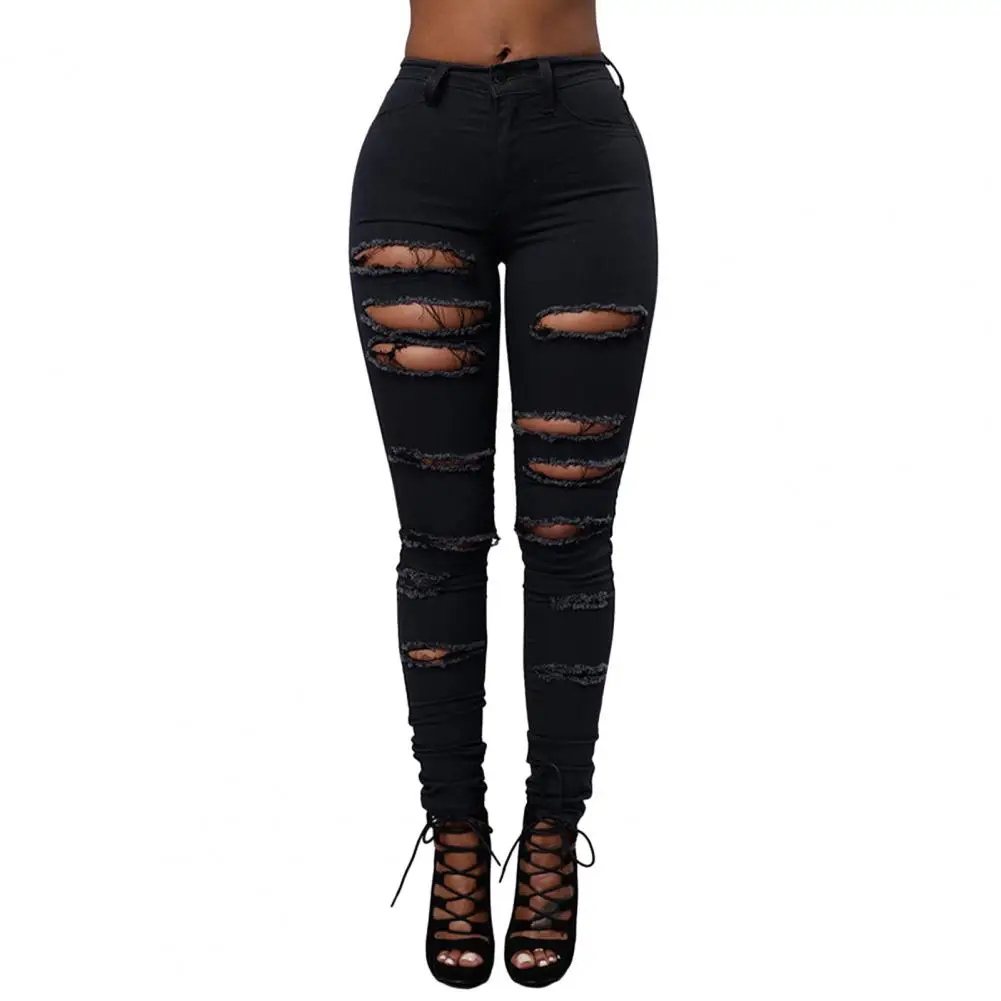 Name | Cotton Blend Women Jeans Ripped Holes High Tight Waist Punk Slim Soft Stretchy Casual Ankle Length Denim Pants Jeans |