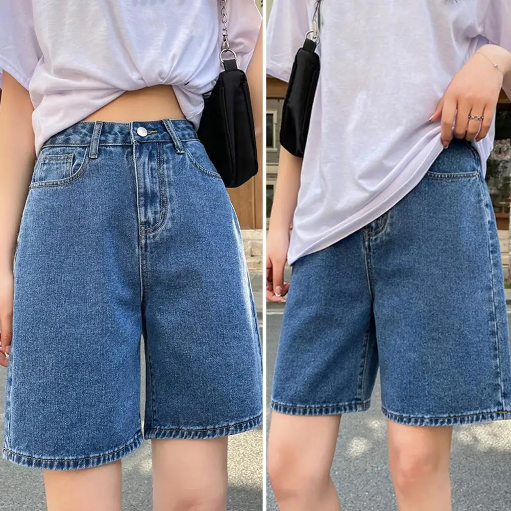 Lady Jeans Denim Shorts with Pockets Vintage Denim Shorts with Adjustable Waist Pockets for Women Knee Length A-line Pants Plus