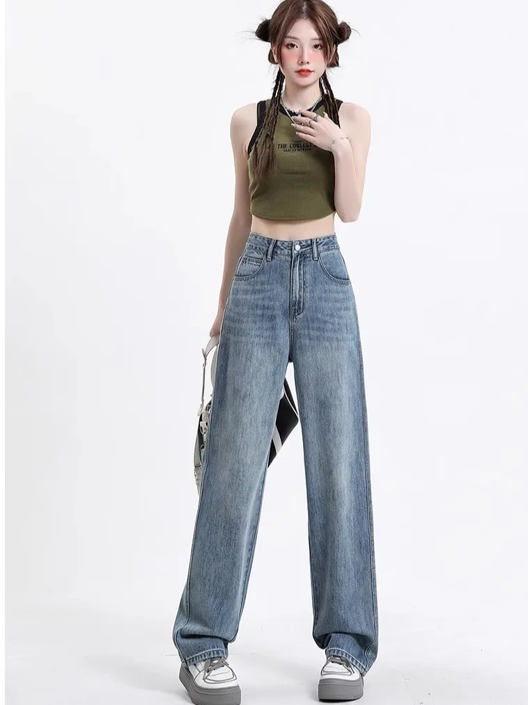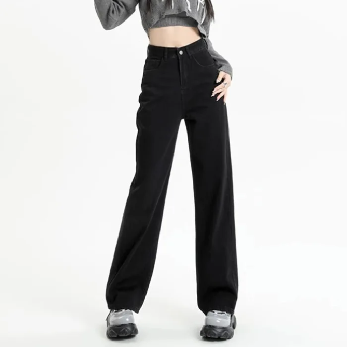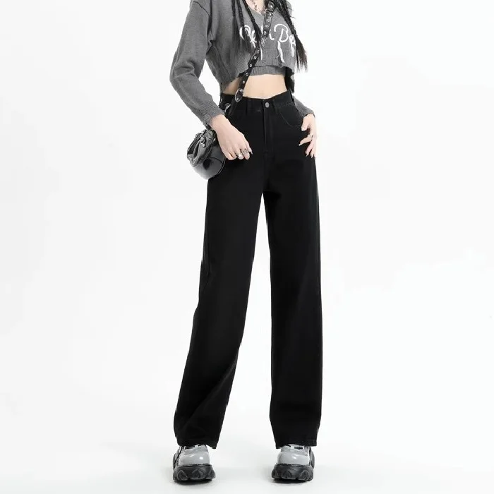 Vintage Women High Waist Baggy Jeans Women Black Loose Jeans Streetwear Trousers Button Women Pants Straight Wide Leg Jeans
