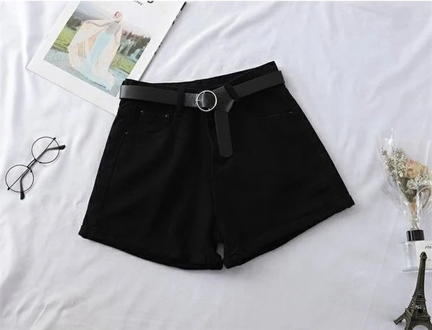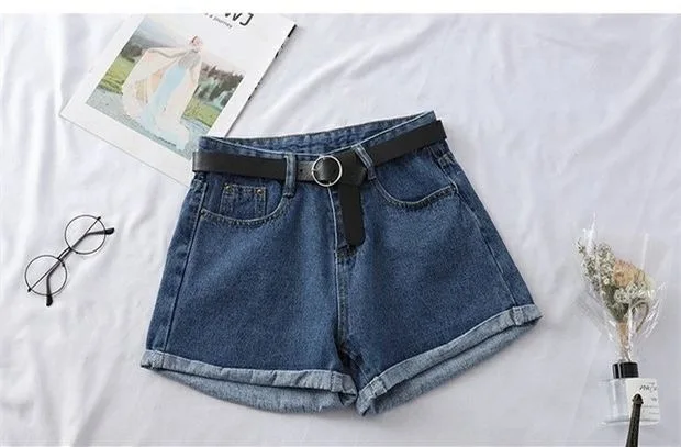 Relaxed Slim Denim Shorts 2023 Summer New High Waist Casual Fashion Large Solid Wide Leg Cotton Denim Shorts