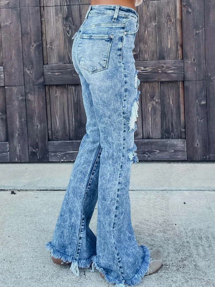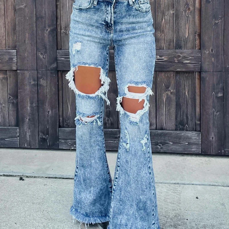 Name | Hole Blue Jeans for Women Pants Jeans Casual Long Flare Pants Slim High Waist Denim Trousers Button Capris Y2k Spring 2024 |
