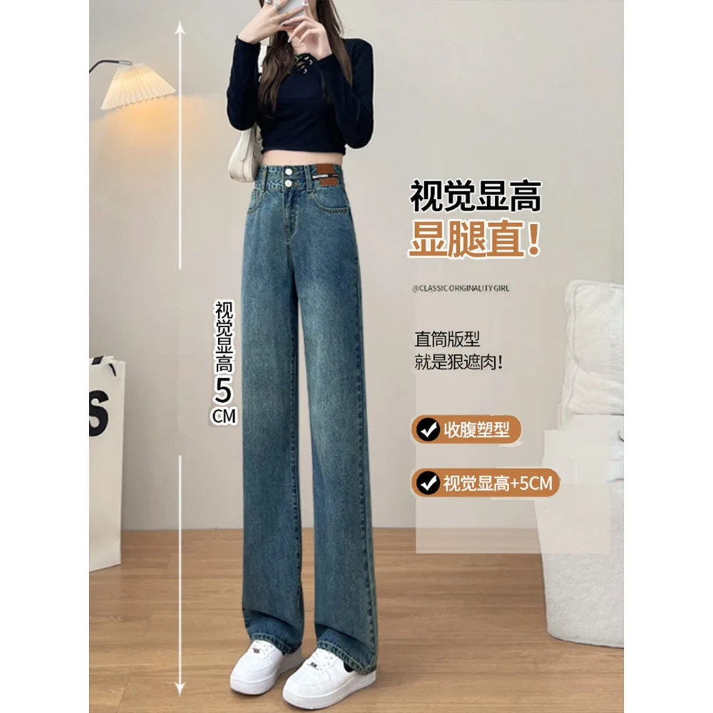 Name | Vintage Baggy Jeans Women High Waist Solid Casual Denim Pants Fashion Trousers Straight Jeans Female Floor-length Wide-leg Jeans |