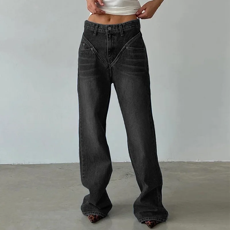 Name | Elegant Pants Blue Jeans for Women Long Straight Pants Denim Trousers High Waist Y2k Loose Casual Trouser Autumn Spring 2024 |