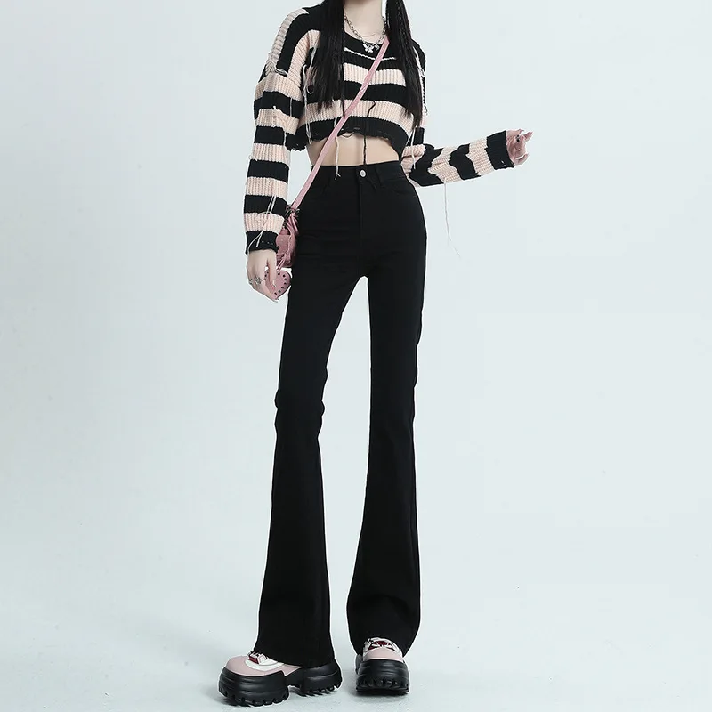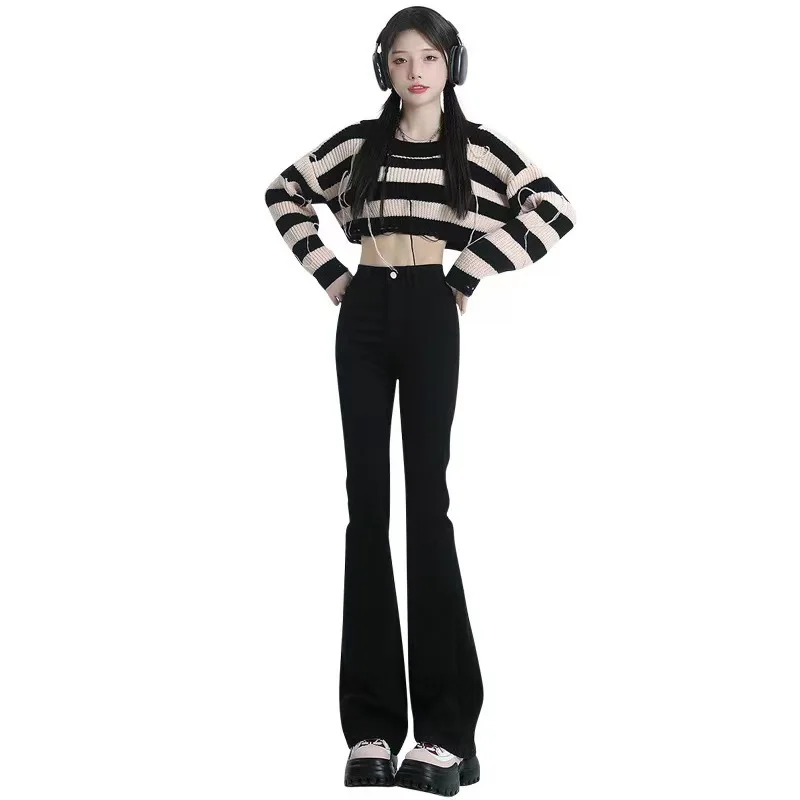 Name | High Street Hip Hop Women Pants Black Micro-flared Jeans for Women Wide-leg Casual Straight-leg Pants Y2k American Streetwear |