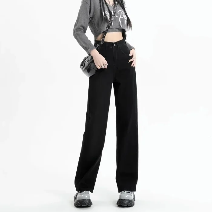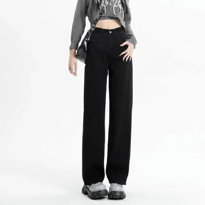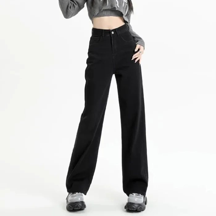 New Black Loose Jeans Streetwear Vintage Women High Waist Baggy Jeans Women Trousers Button Women Pants Straight Wide Leg Jeans