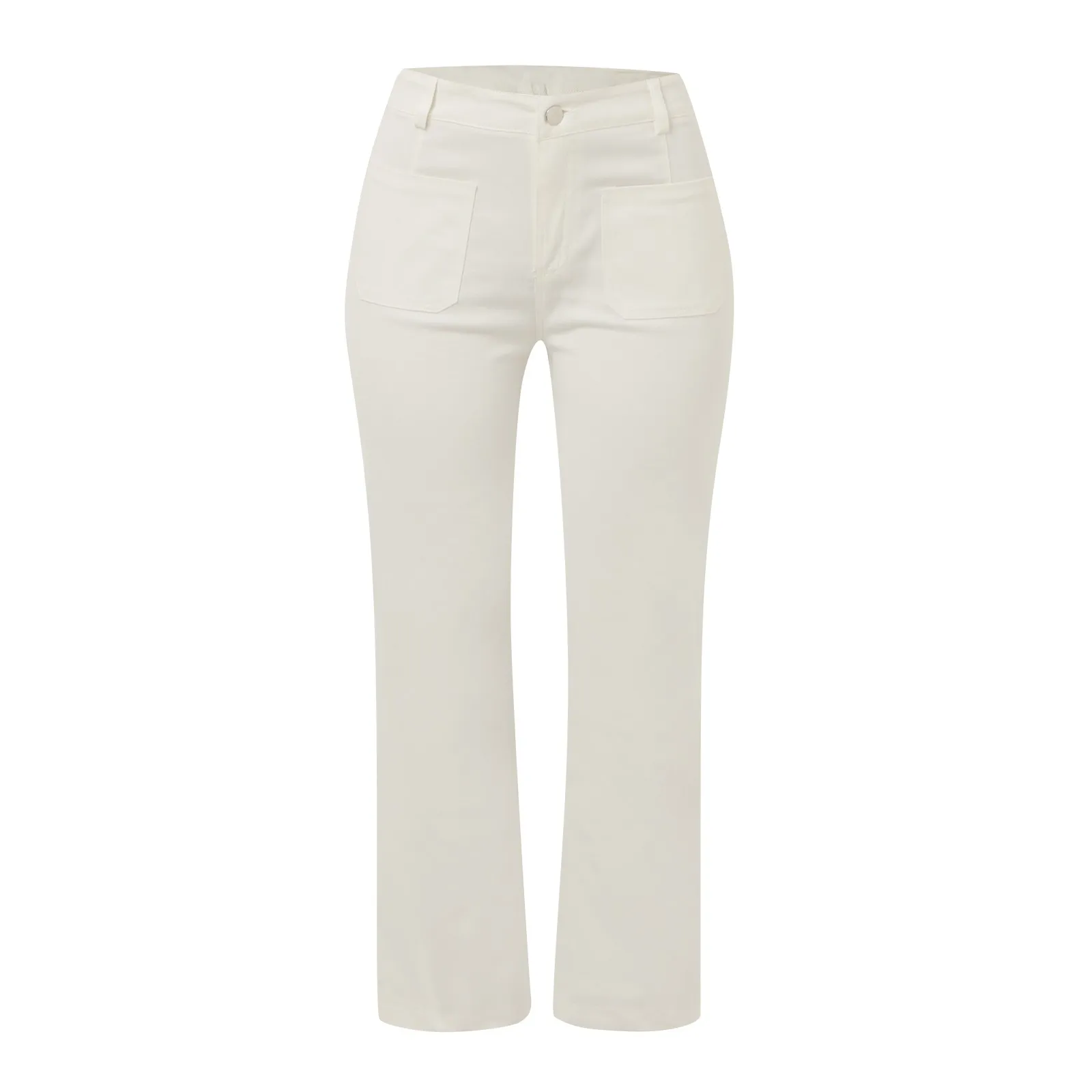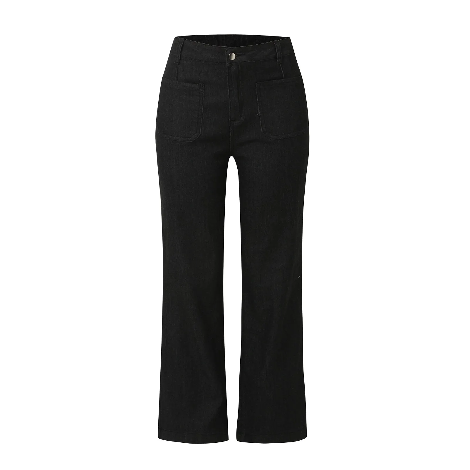 Women's Spring And Summer Casual Comfortable Jeans Washed Stretch Flared Wide Leg Denim Pants Solid Color Loose Ninth Pants