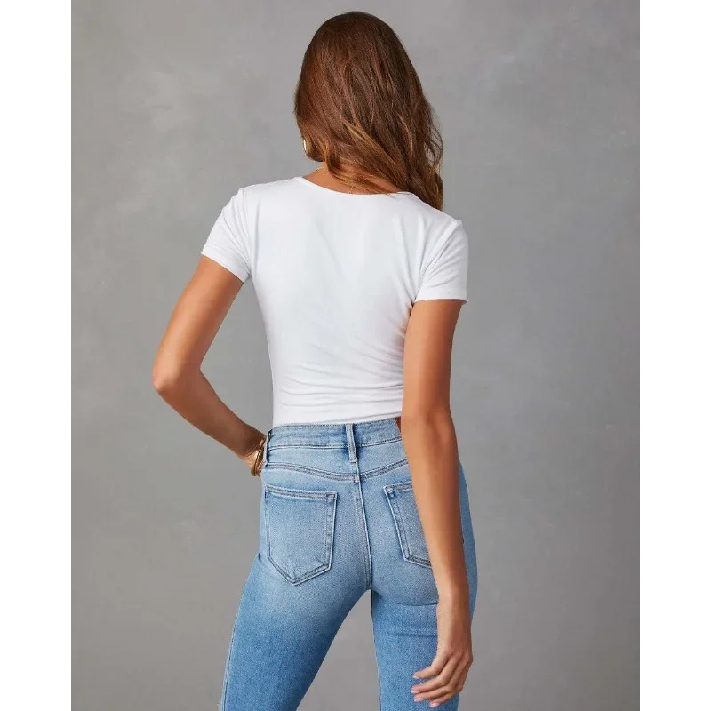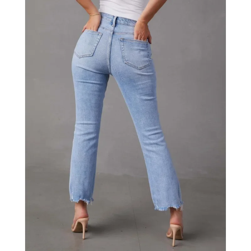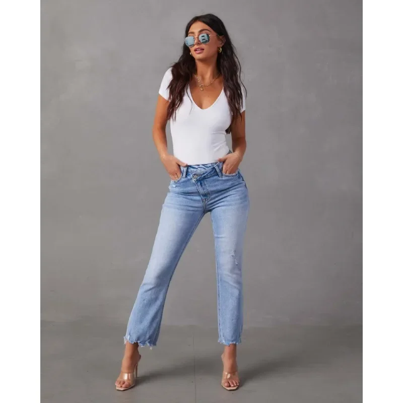 New Arrivals Sense Design 2024 Spring Summer New Women's Clothing Regular Mid-Waist Button Washed Jeans Slim Fit Wide Leg Pant