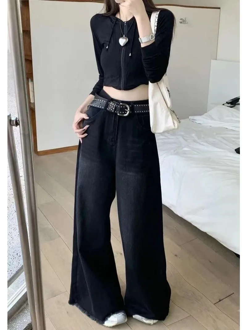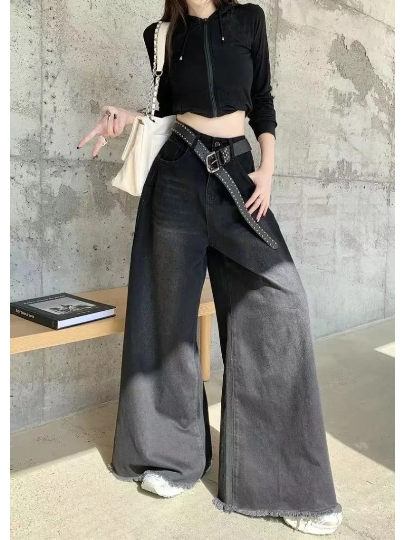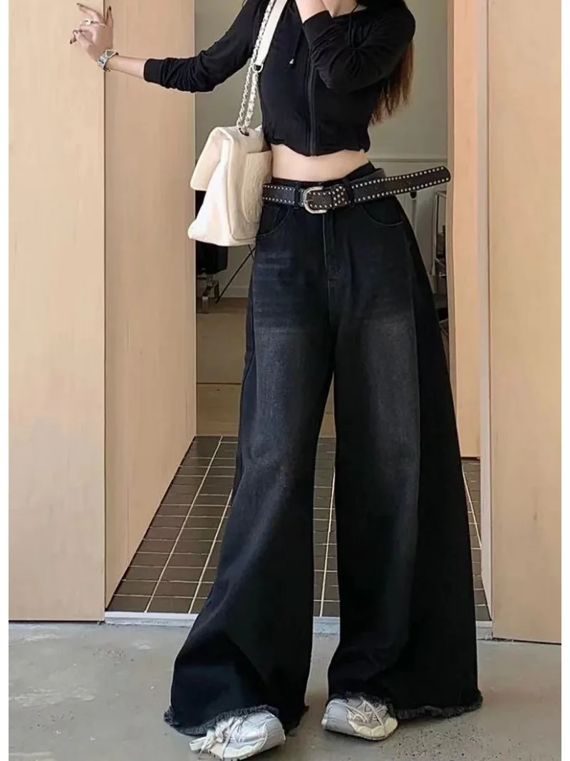 Name | Hot Girl Baggy Woman Pants Y2k Street vintage Washed To Make Old Jeans Straight Wide-Leg Denim Black Gothic Pants For Women |