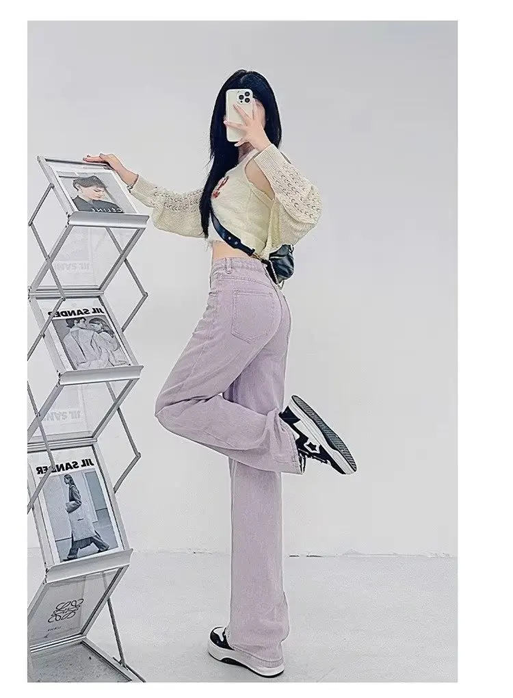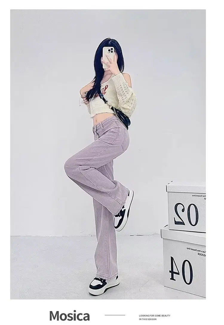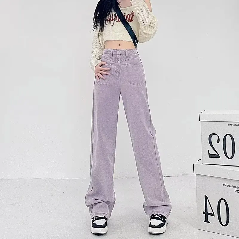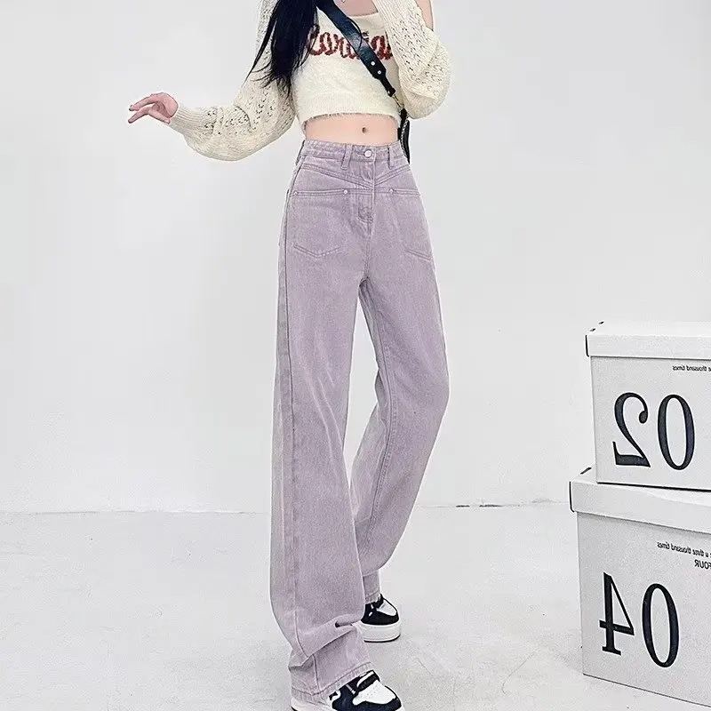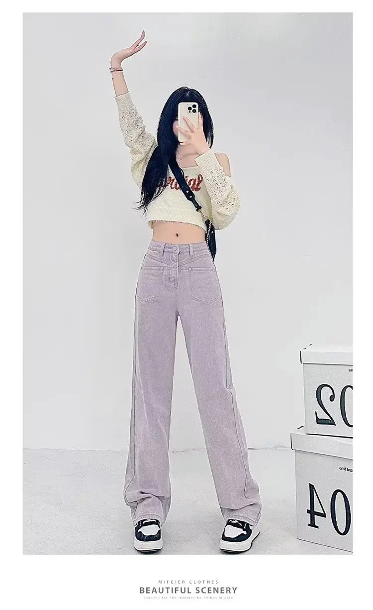 Name | 2024 American Style Retro Purple Wide-Leg Jeans Female High Waist Slim Fashion Straight Pants. |