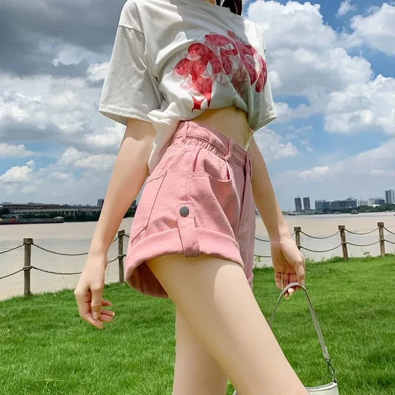 Summer High Waist Denim Shorts Women's Loose Korean A-Line Pants Female Wide-Leg Cowboy Shorts 2024 Women's Clothing