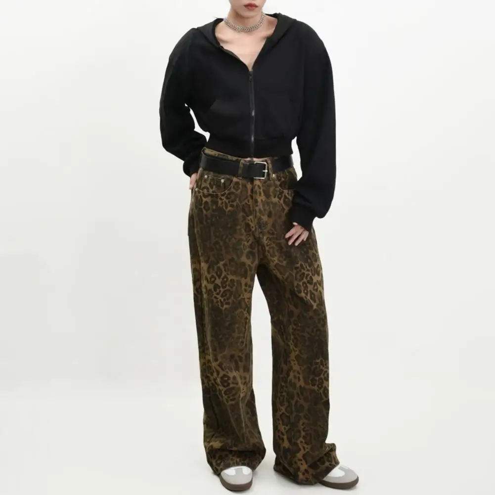 Unisex Jeans Leopard Print Hip Hop Wide Leg Loose Straight Jeans Soft Streetwear Young Adult Long Trousers