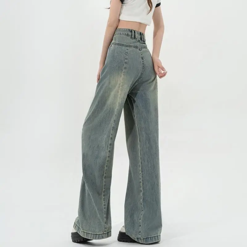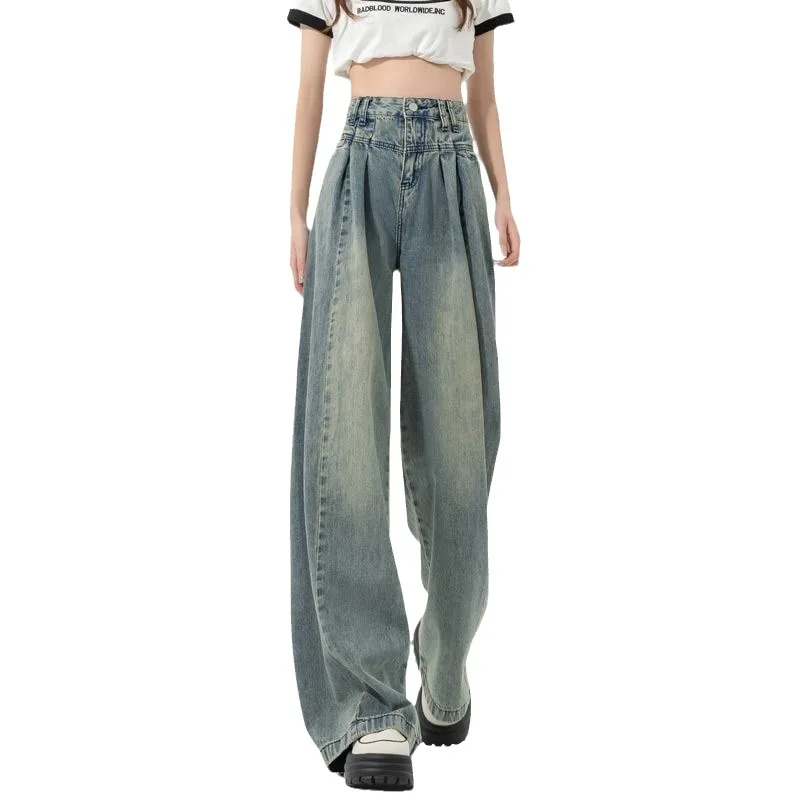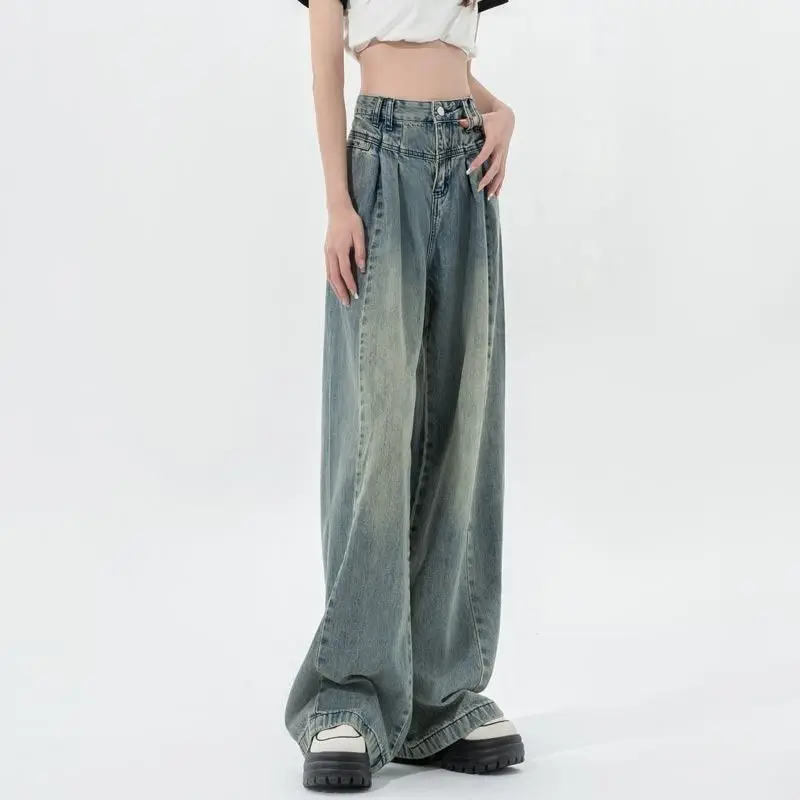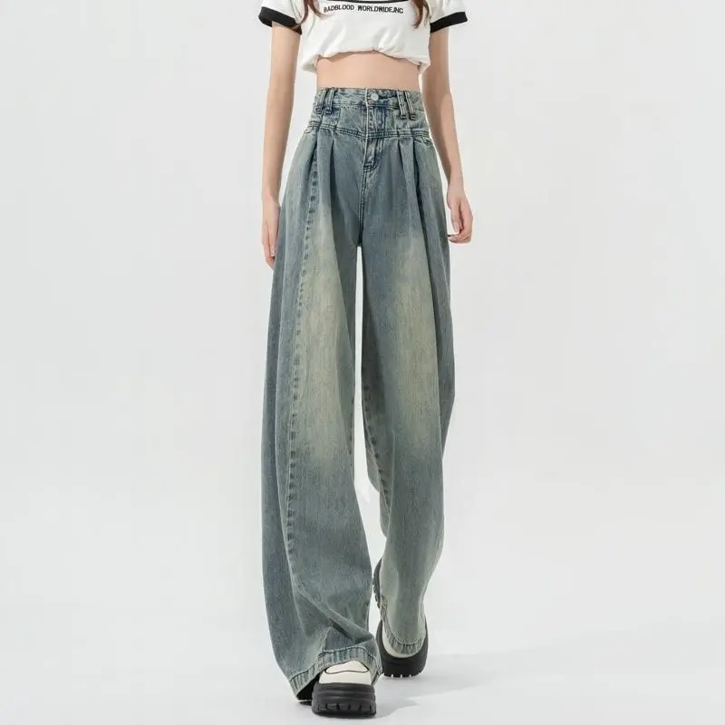 New High-waisted Jeans for Women Blue Female Korean Style Jeans Women Denim Female Floor-length Pants Wide Leg Baggy Jeans Women