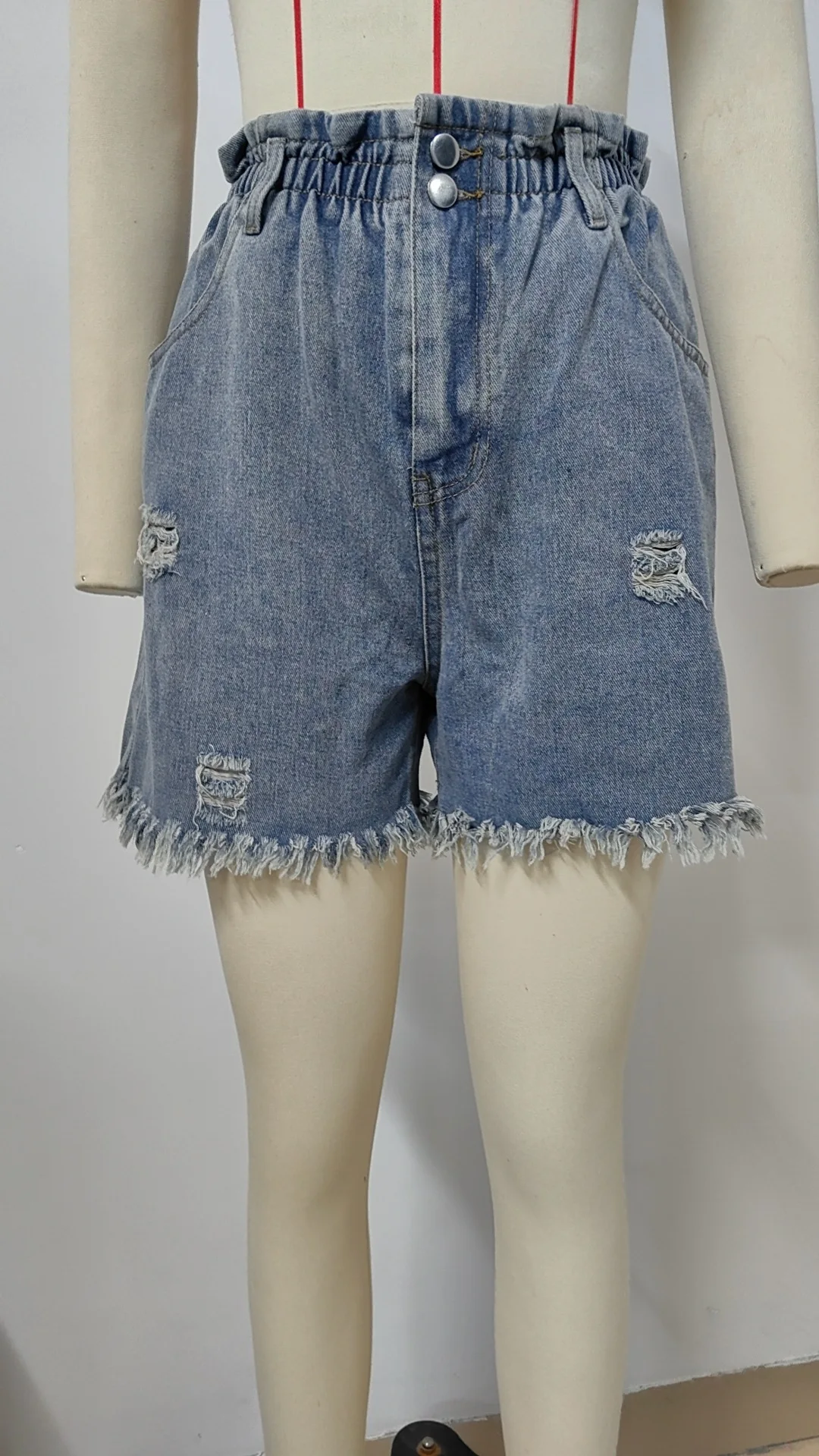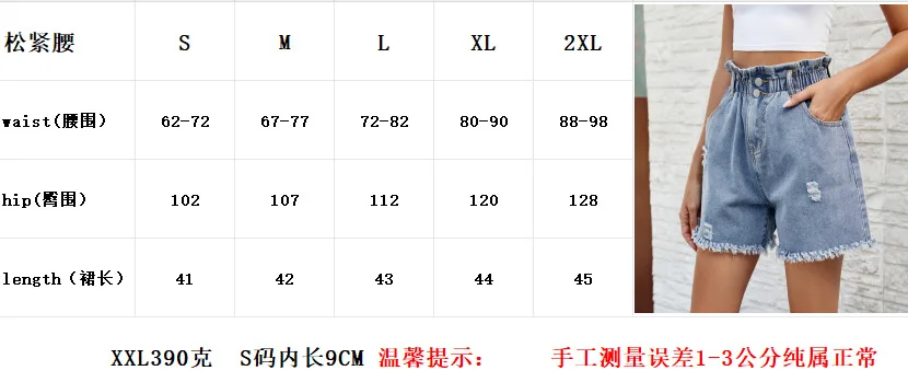 Washed Women Short Jeans High Elastic Waist Denim Bud Shorts Tide Ripped Streetwear Summer Short Denim Pants Casual Jeans