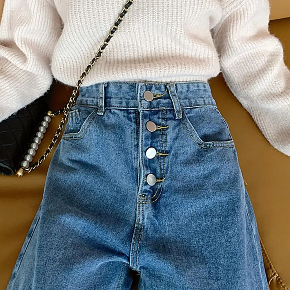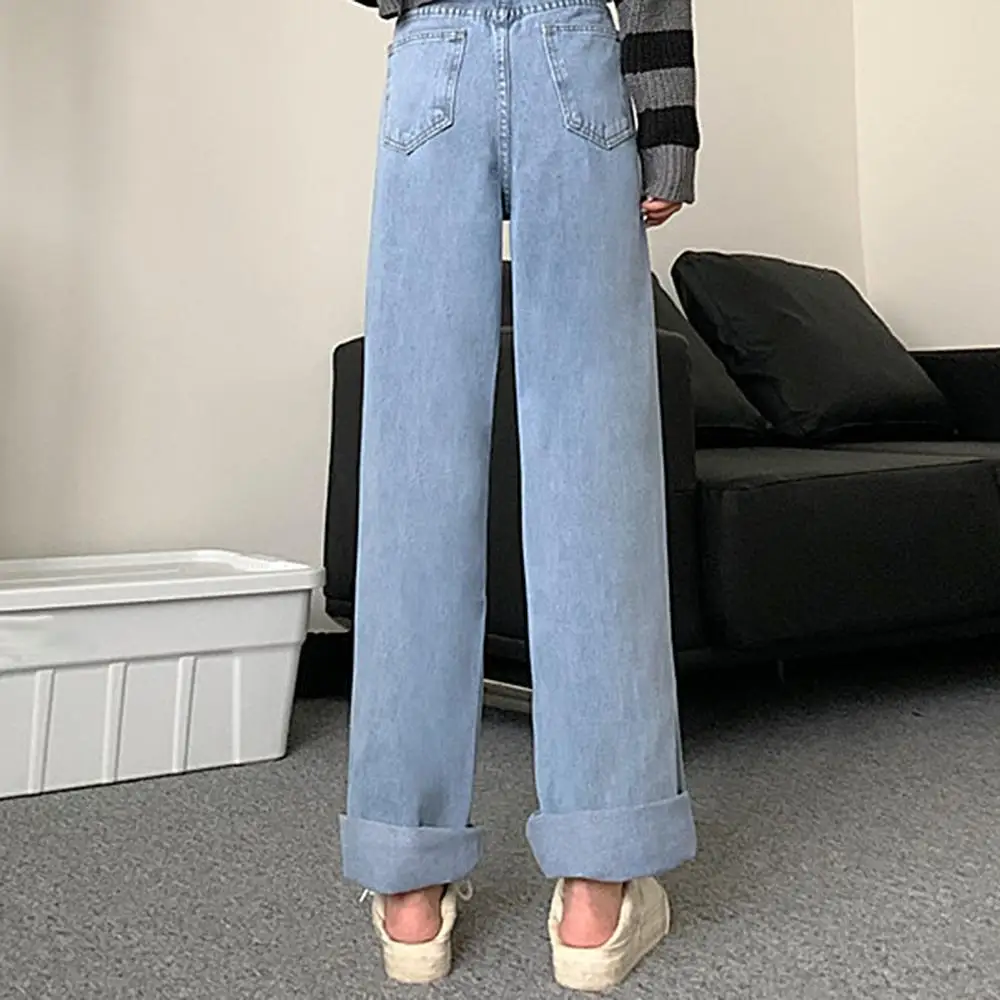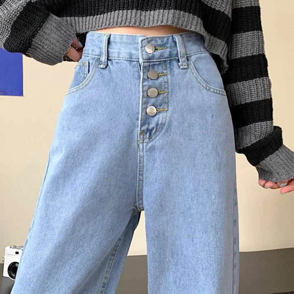 High Quality Cotton Jeans Women Wide Leg Denim Pants Femme Black Blue Streetwear Baggy Straight Design Waist Trousers Woman XL