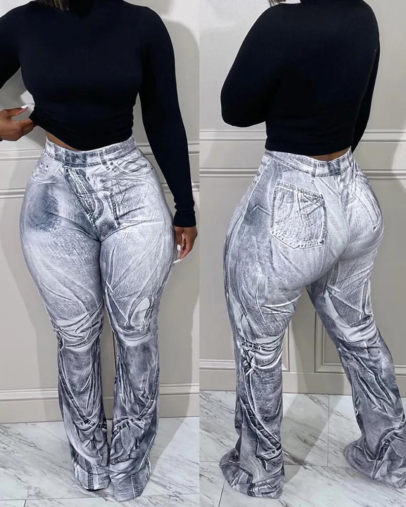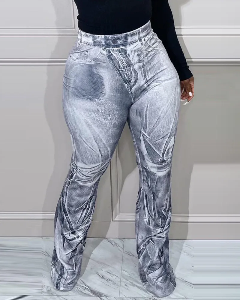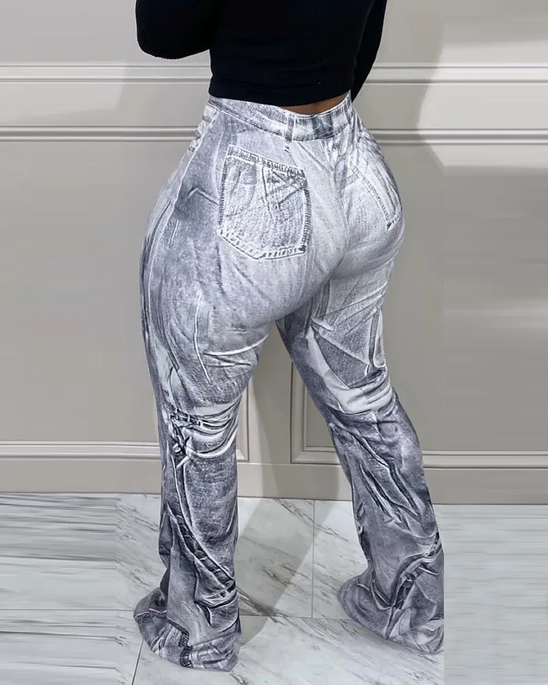Name | Denim Print High Waist Pocket Design Pants Women Spring Summer Fashion Pants Trousers |
