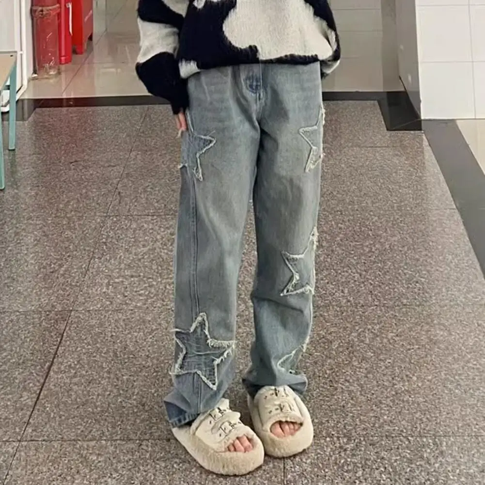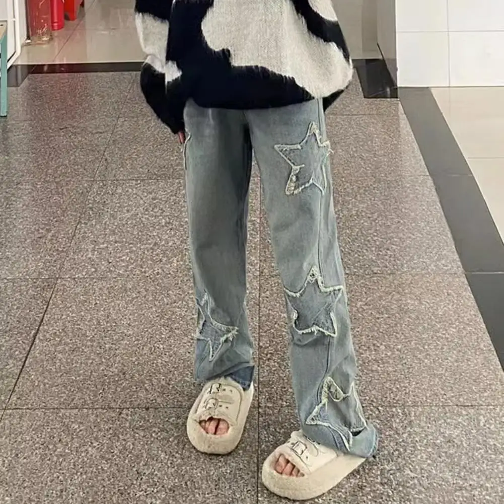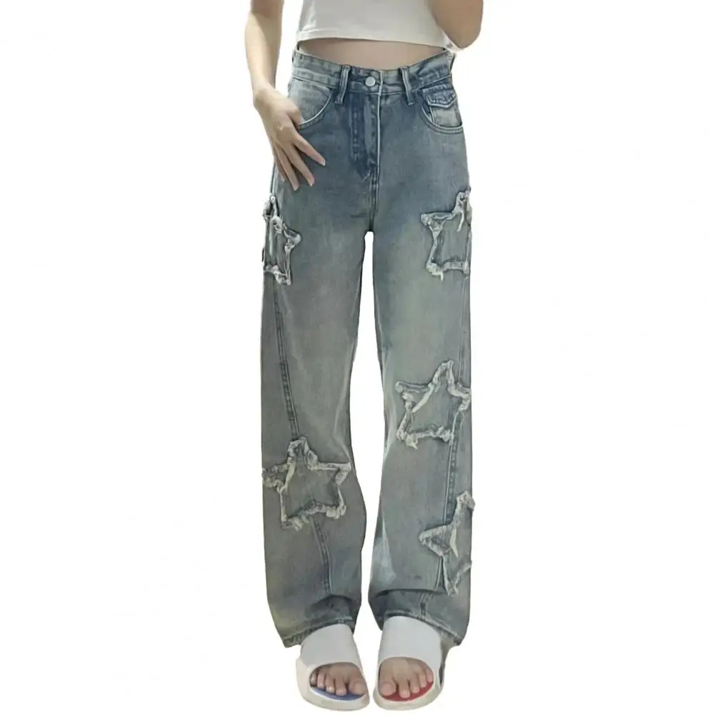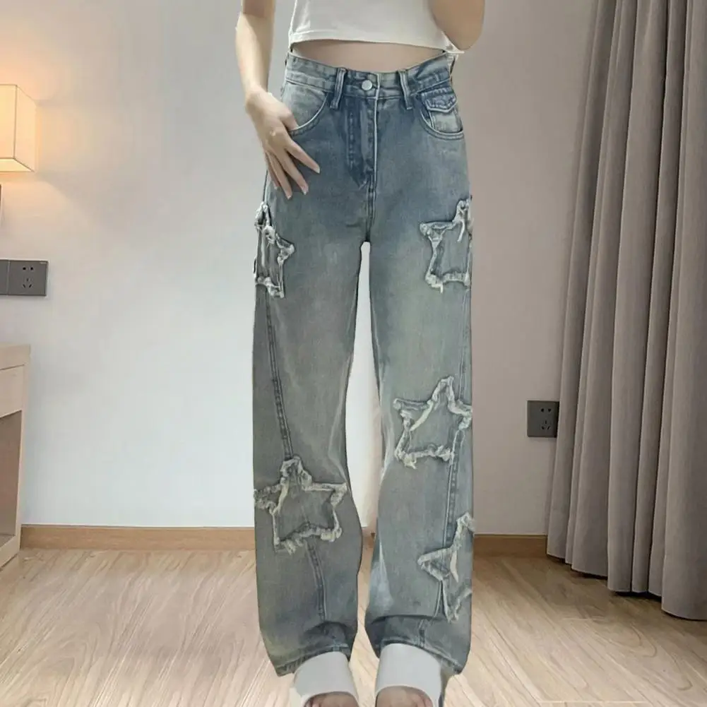 Durable Lightweight Trousers for Women Fashionable Star Embroidered Wide Leg Jeans for Women Stylish Comfortable Denim Pants