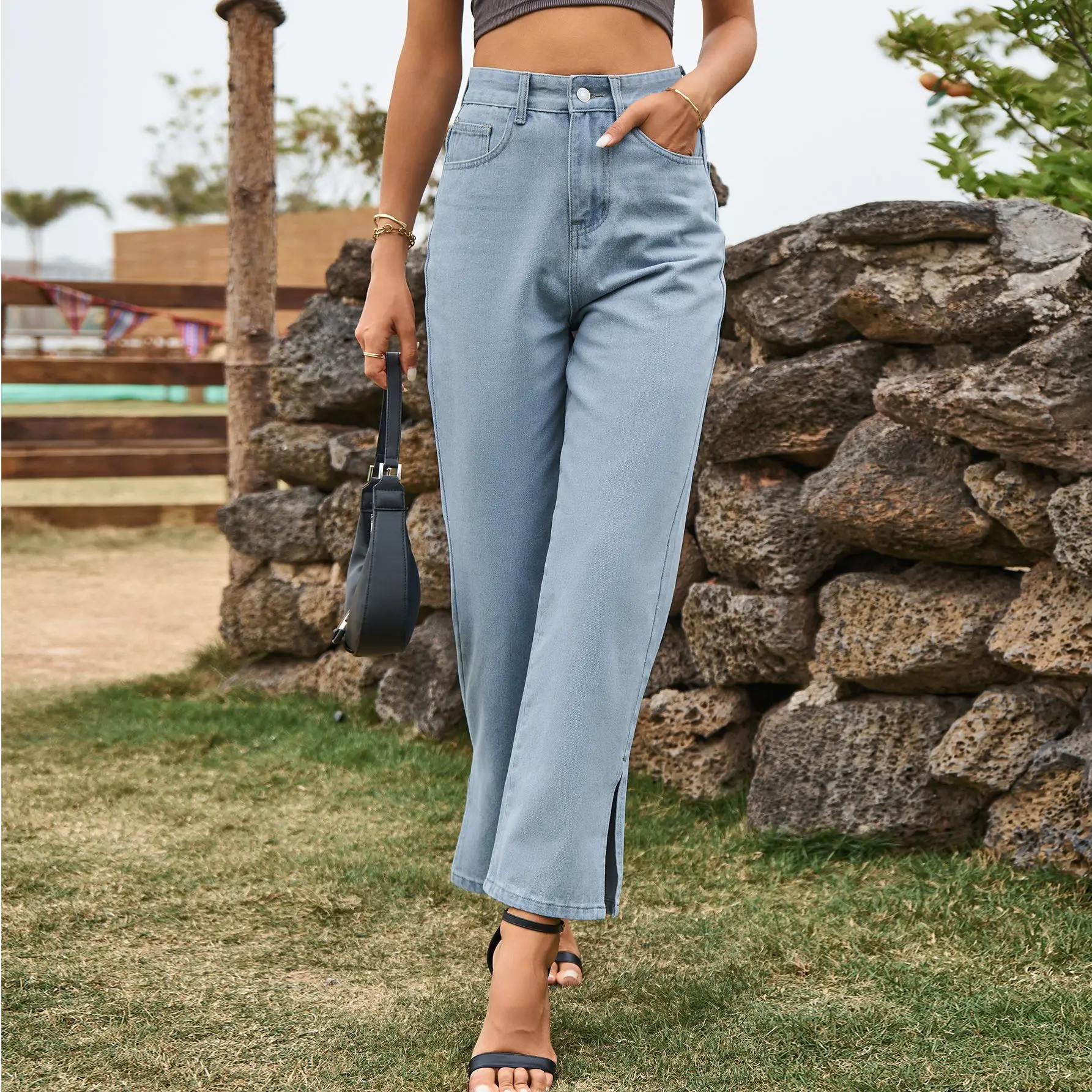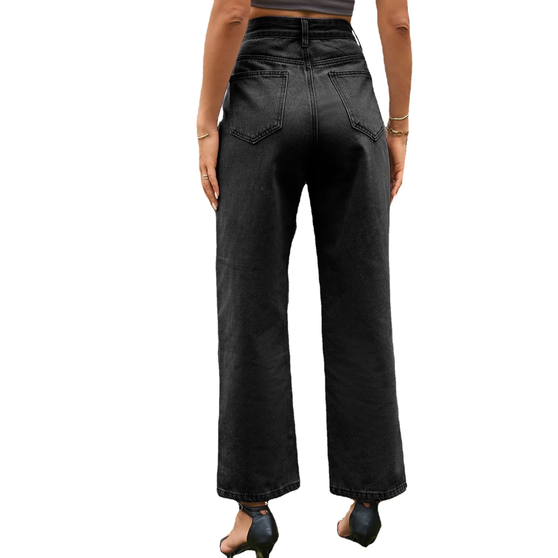 Name | Jeans Washed Straight Pants Women Mid Waist Vintage Pockets Button Zipper Fly Denim Ankle Length Trousers Casual Split Denims |