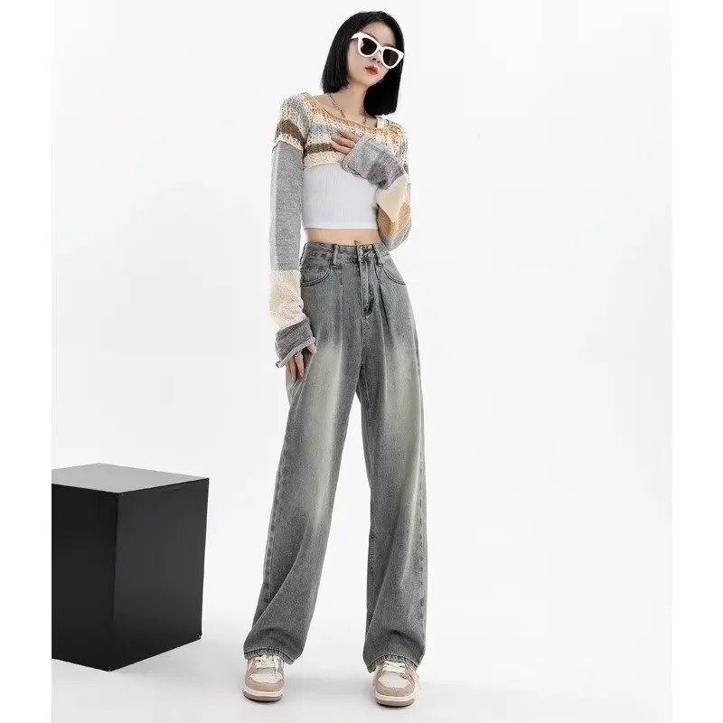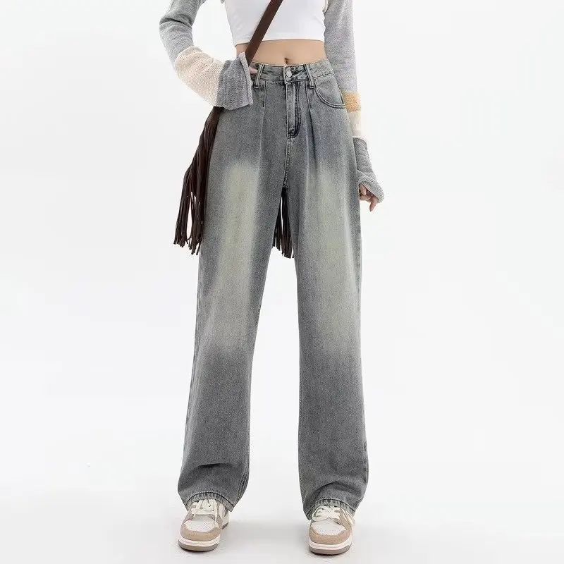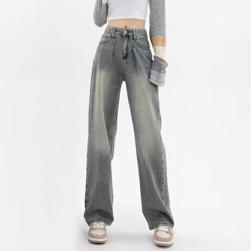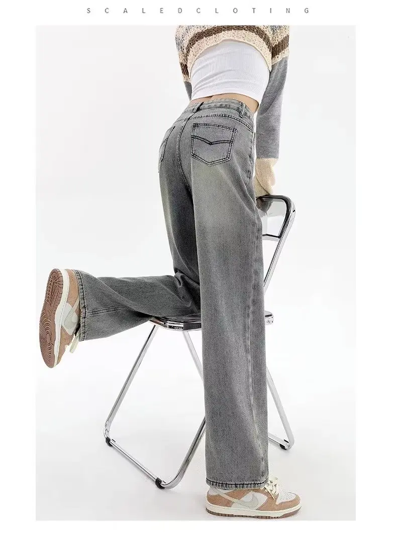 Name | 2024 Korean Style Blue Wide-Leg Jeans Female New High Waist Straight Pants Loose Mopping High Street Pants Fashion Stretch Desig |