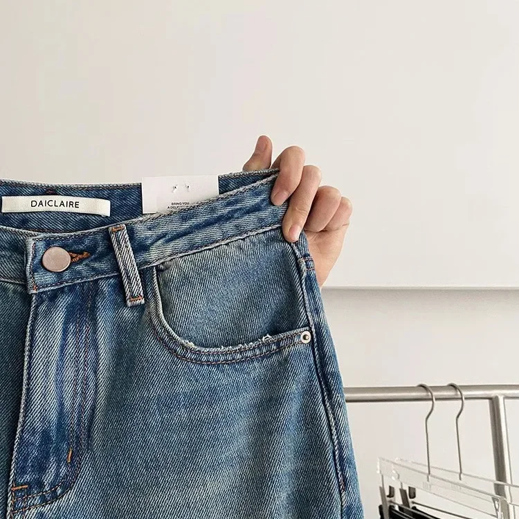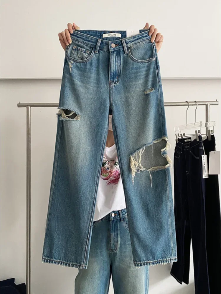 Name | Hole Jeans Women Straight Pants Loose Vintage Pockets Button High Waist Ankle Length Denim Trousers 2024 Casual Washed Denims |