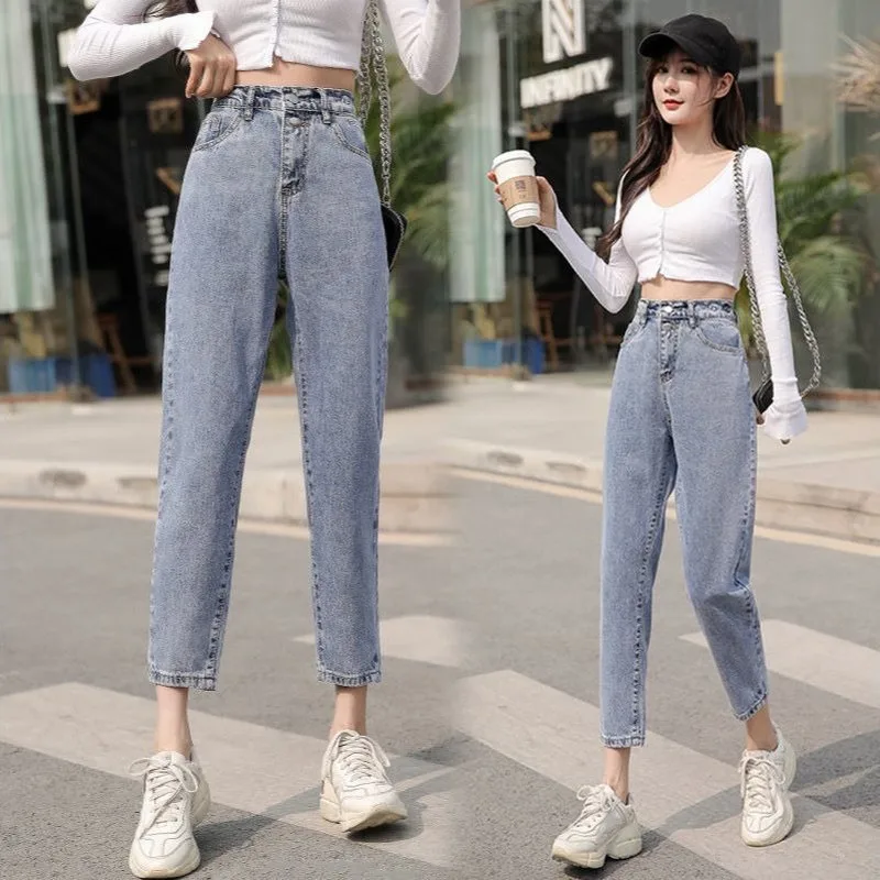 Name | New Elastic Waist Jeans Women's Loose High Waist Slim Nine Points Korean Version of Harlan Embroidery Old Pants Mother Jeans |