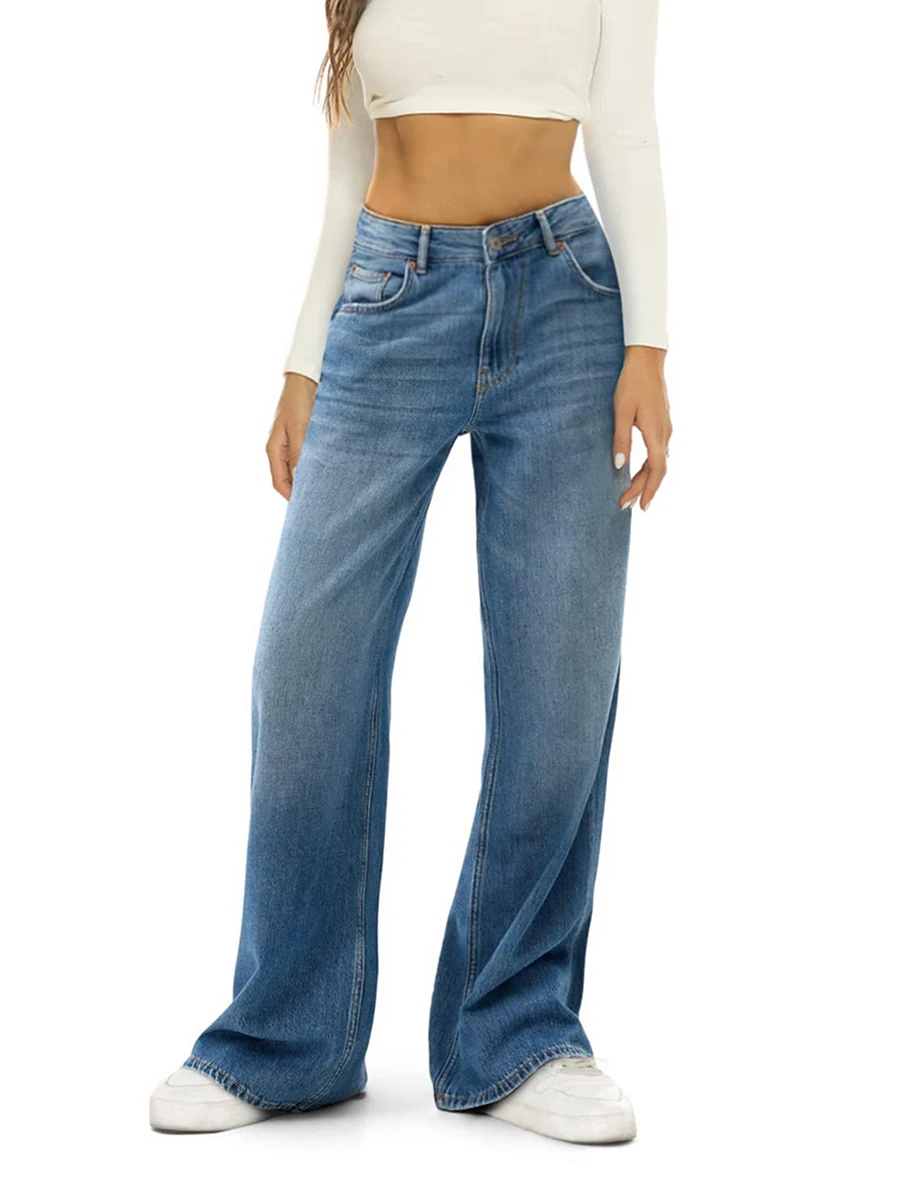 Name | Women Denim Pants, Casual Party Street Solid Color High Waist Loose Pants with Side Pockets |