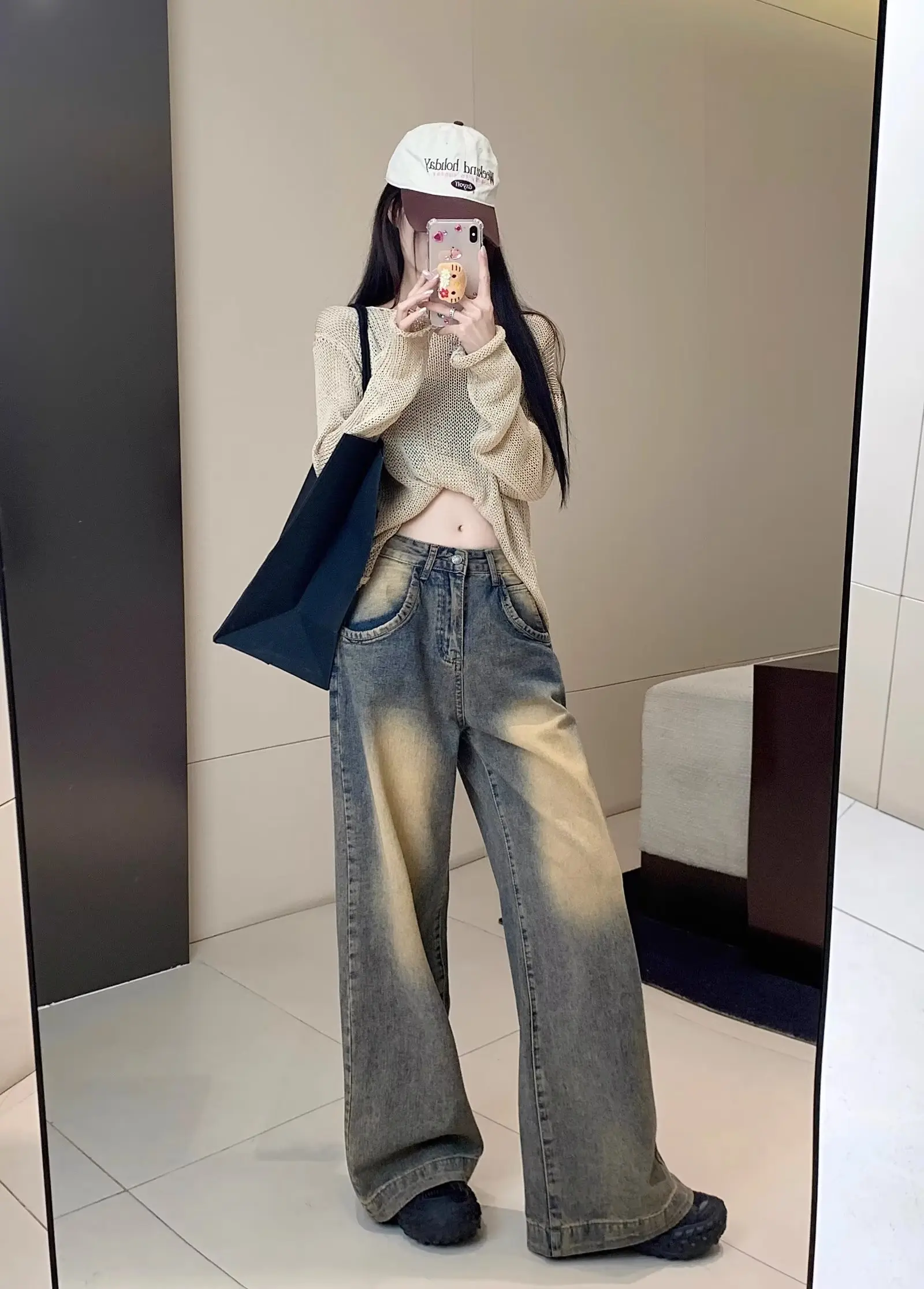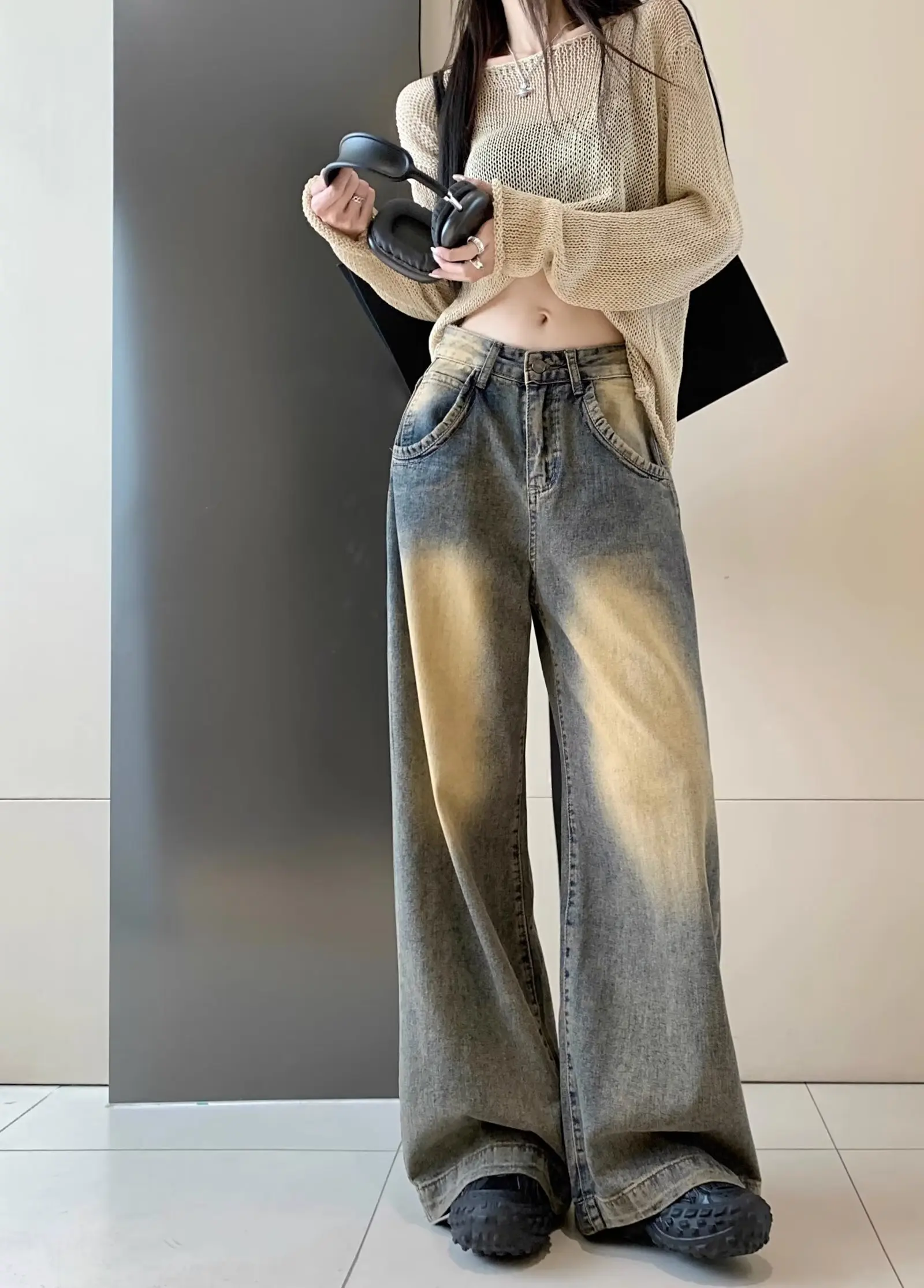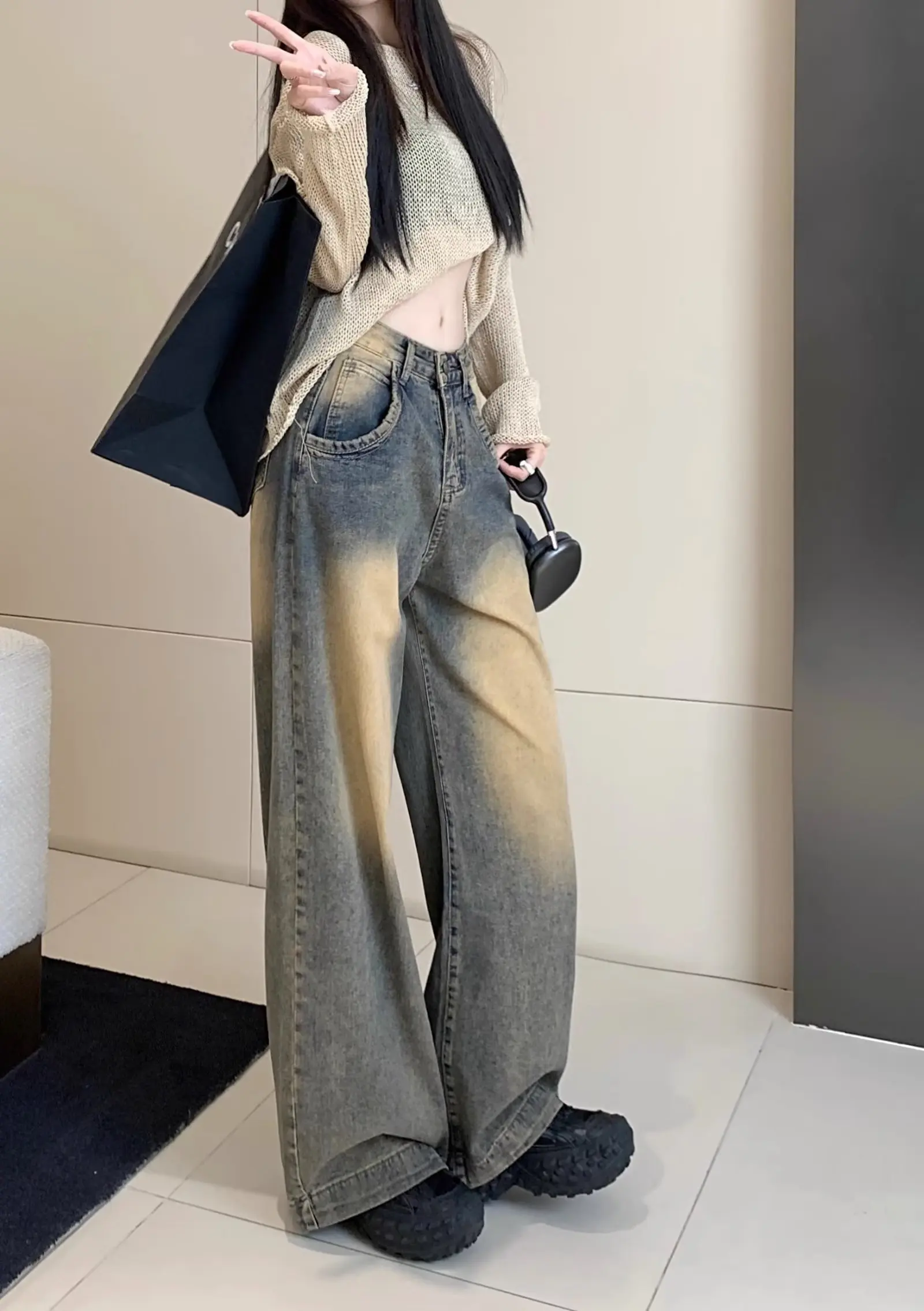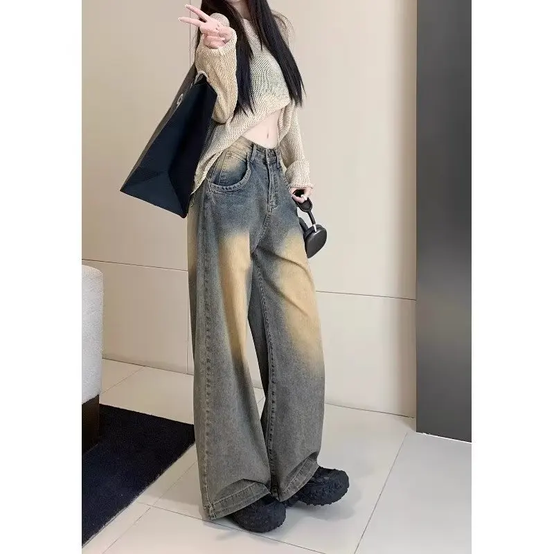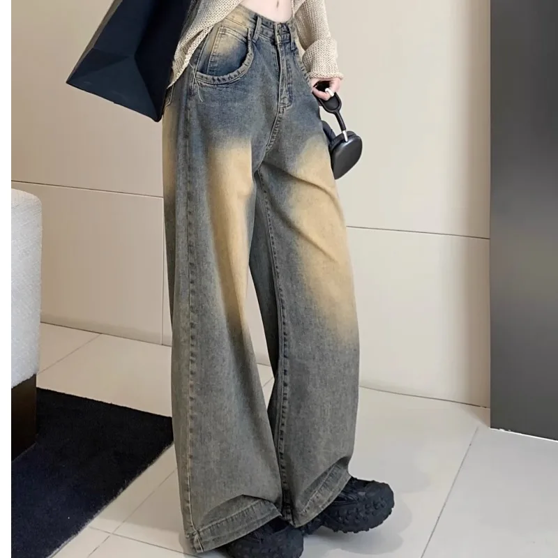 LEDP Women Jeans Retro Wide-Leg for Women New High-Waist, Loose Slim Fashion Stretch Design Jeans
