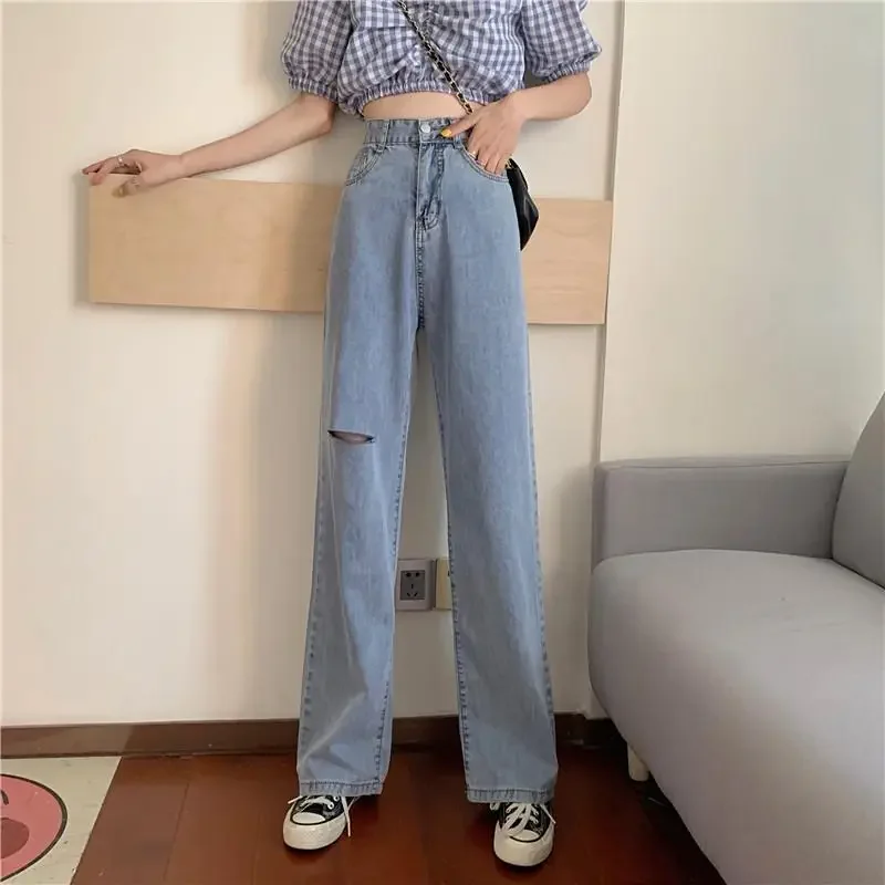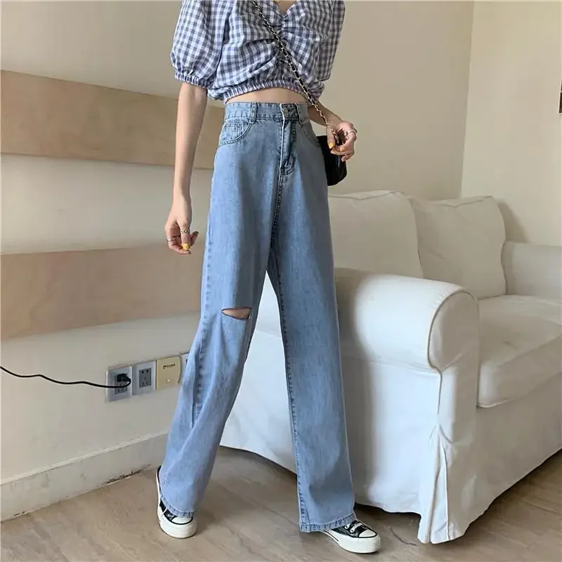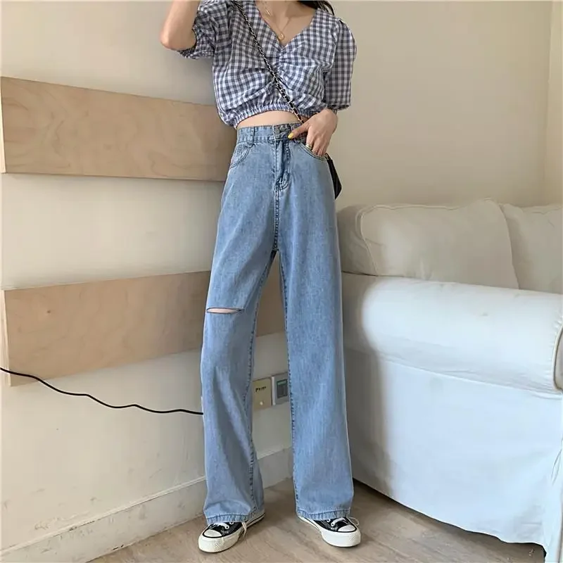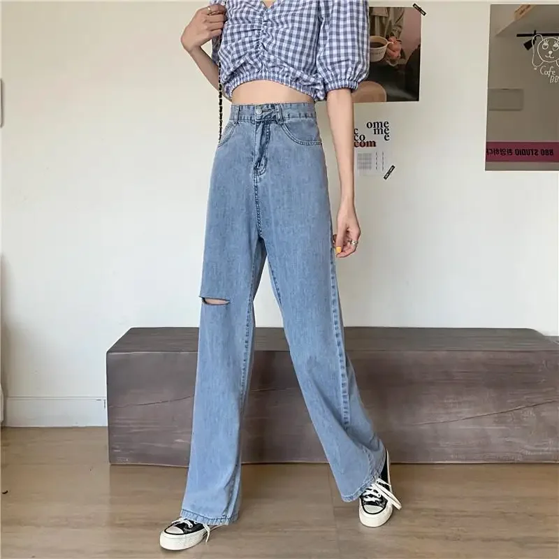 Baggy jeans women's summer thin high waisted SLIM STRAIGHT pants loose wide leg drop feeling mopping pants fashion