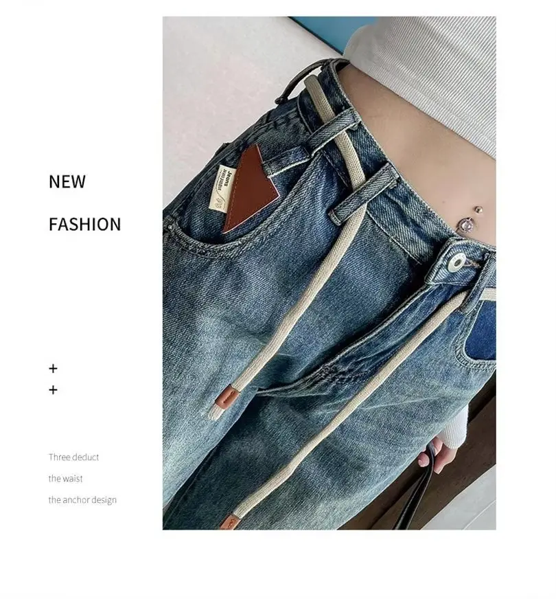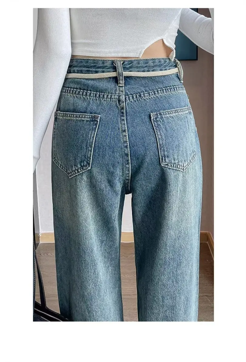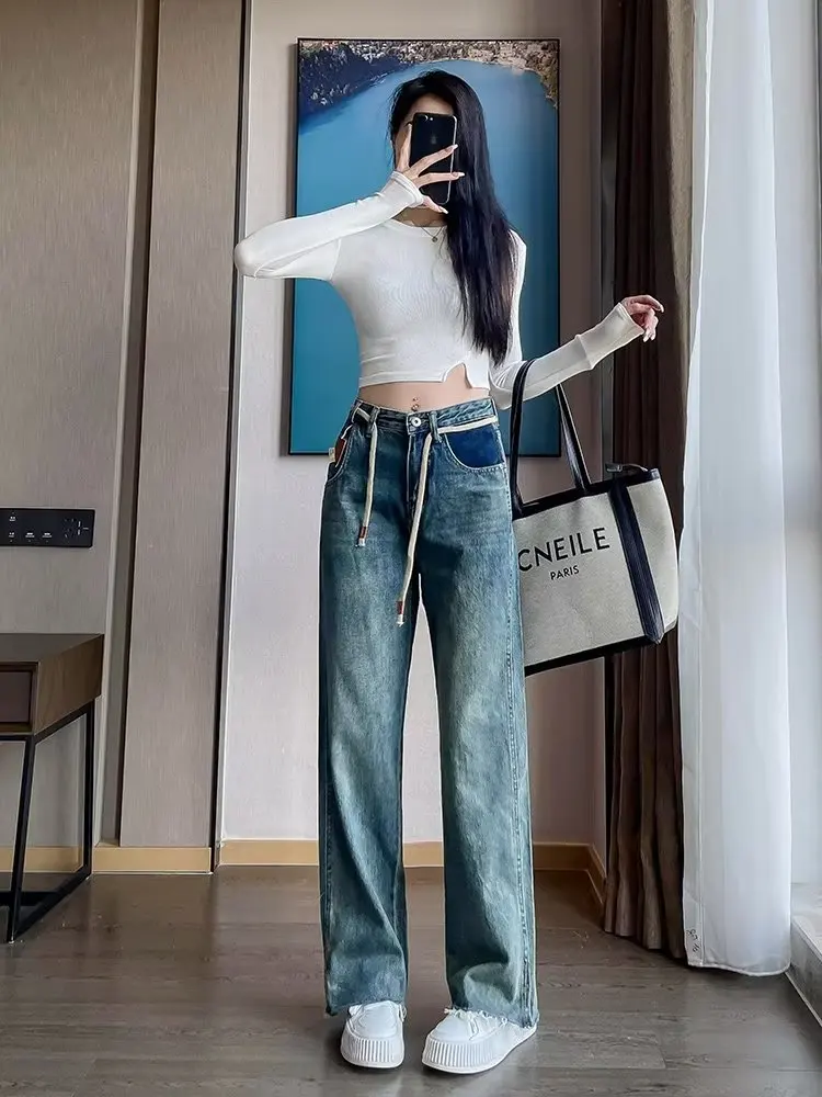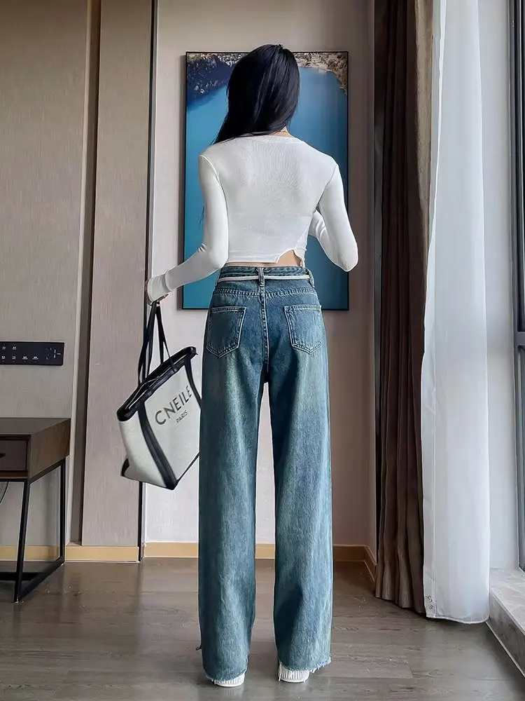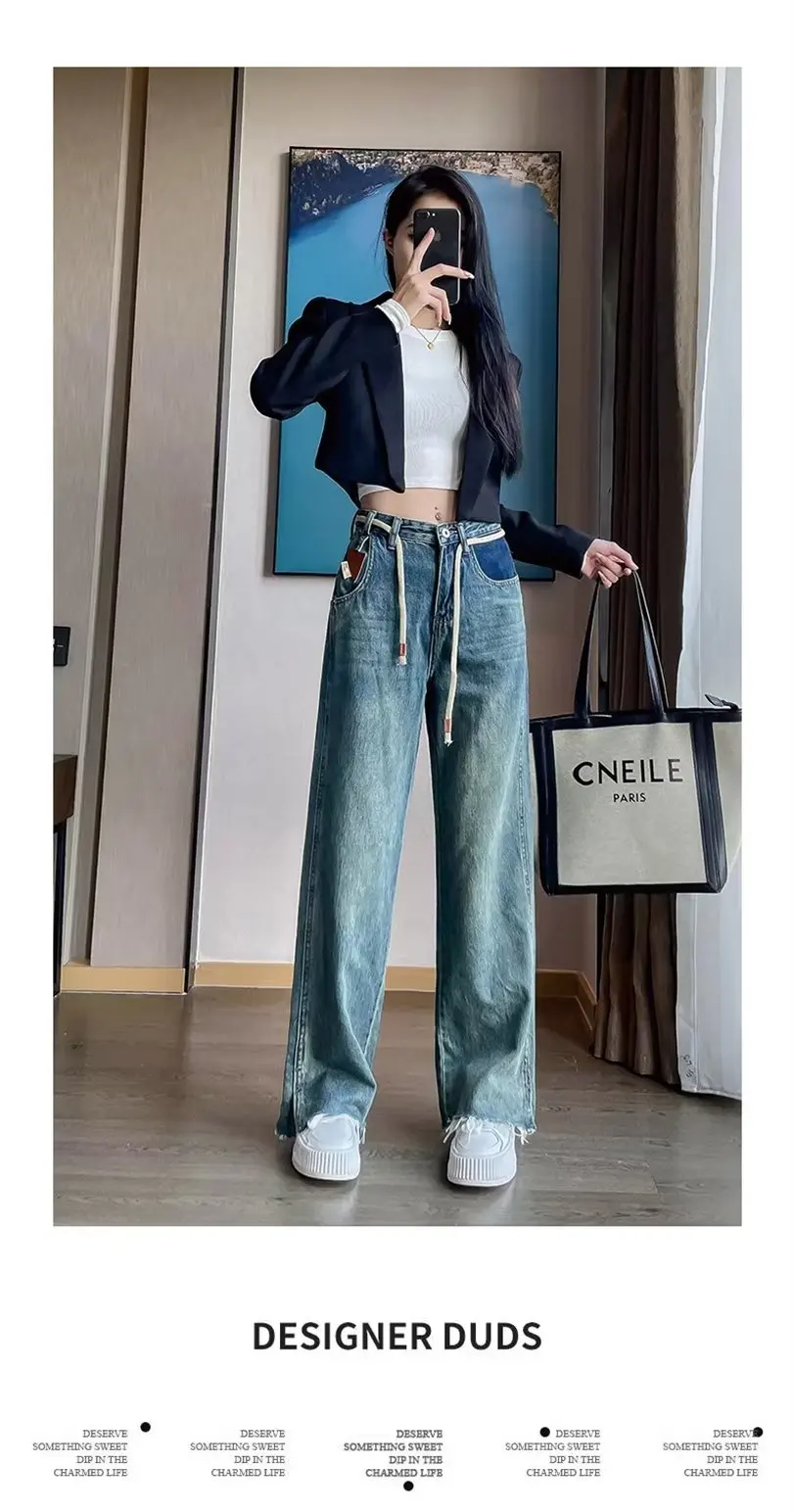 LEDP Women Jeans Minority Design Wide-Leg Jeans High Waist Slim Retro Fashion Stretch Design Jeans