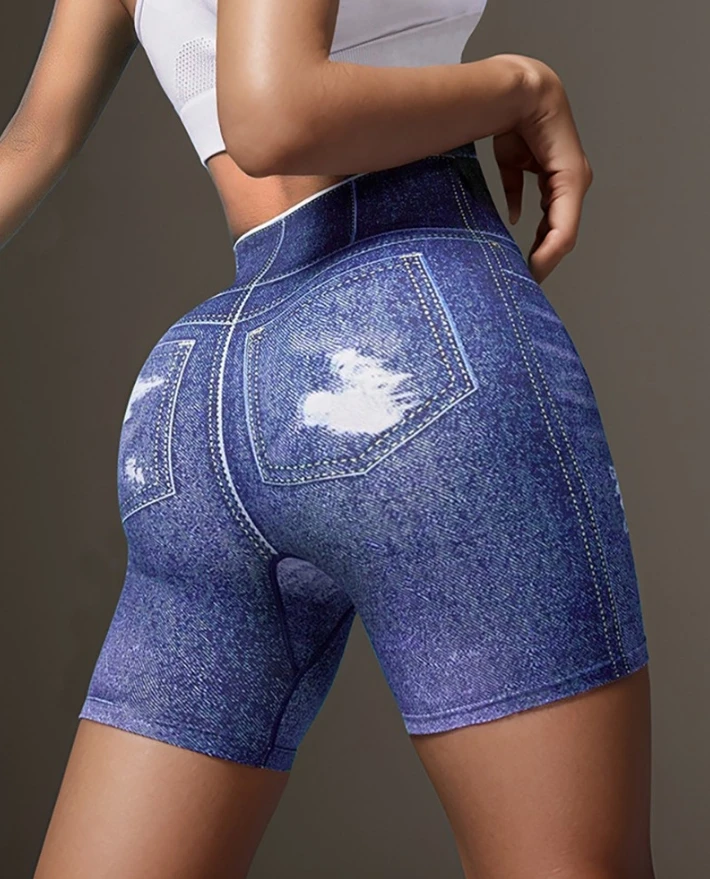 Women's Fashionable Summer New Denim Shorts Denim Look Print High Waist Active Shorts Shipped Within 48 Hours Denim Shorts