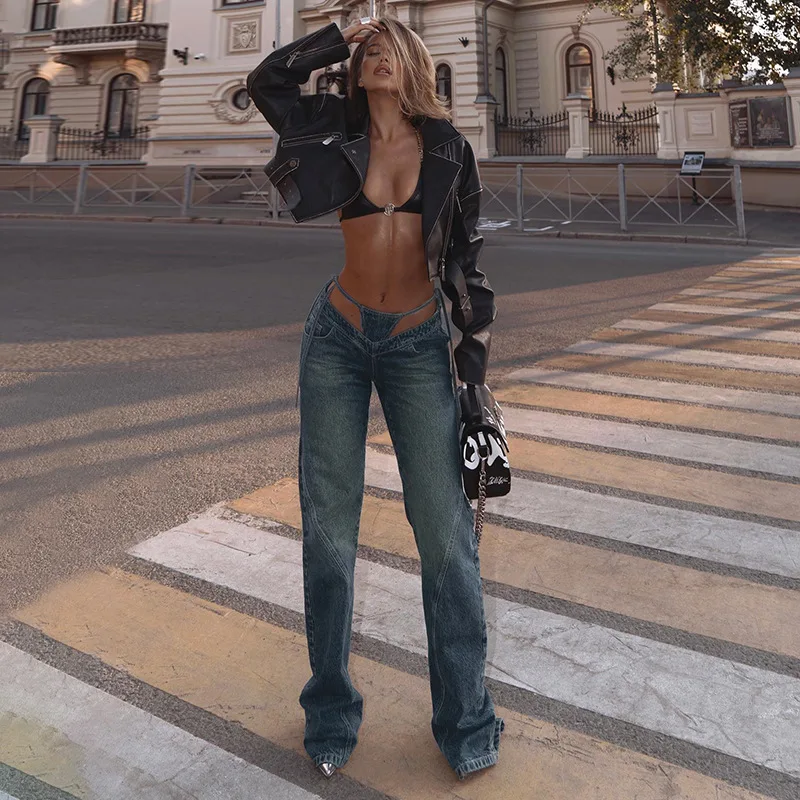 Name | Women Jeans Straight Pants Denim High Waist Loose Vintage Pockets Lace Up Hollow Out Trousers Fake Two Pieces Denims Casual |